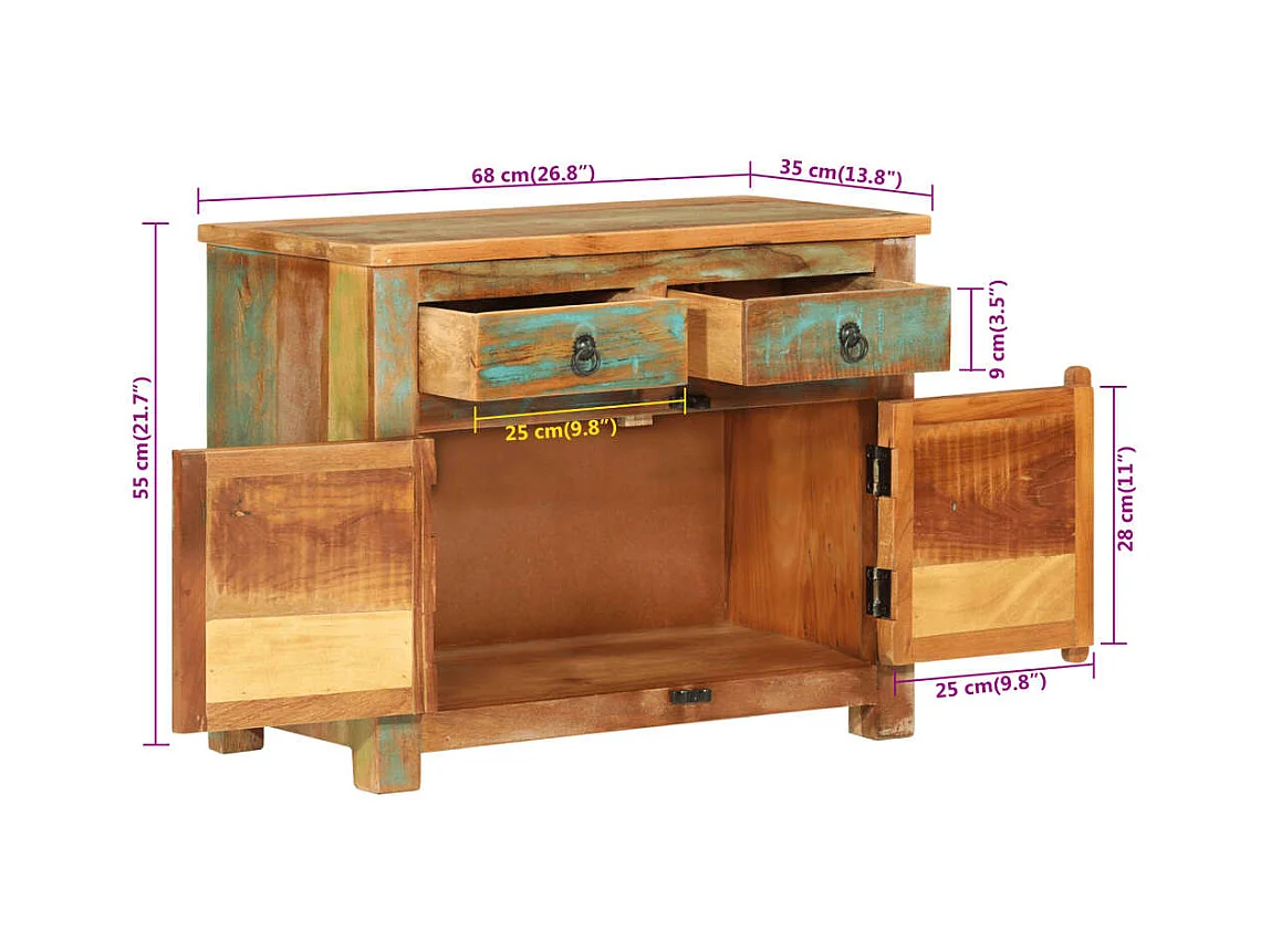 Buffet 68x35x55 cm bois massif de récupération QWE99769