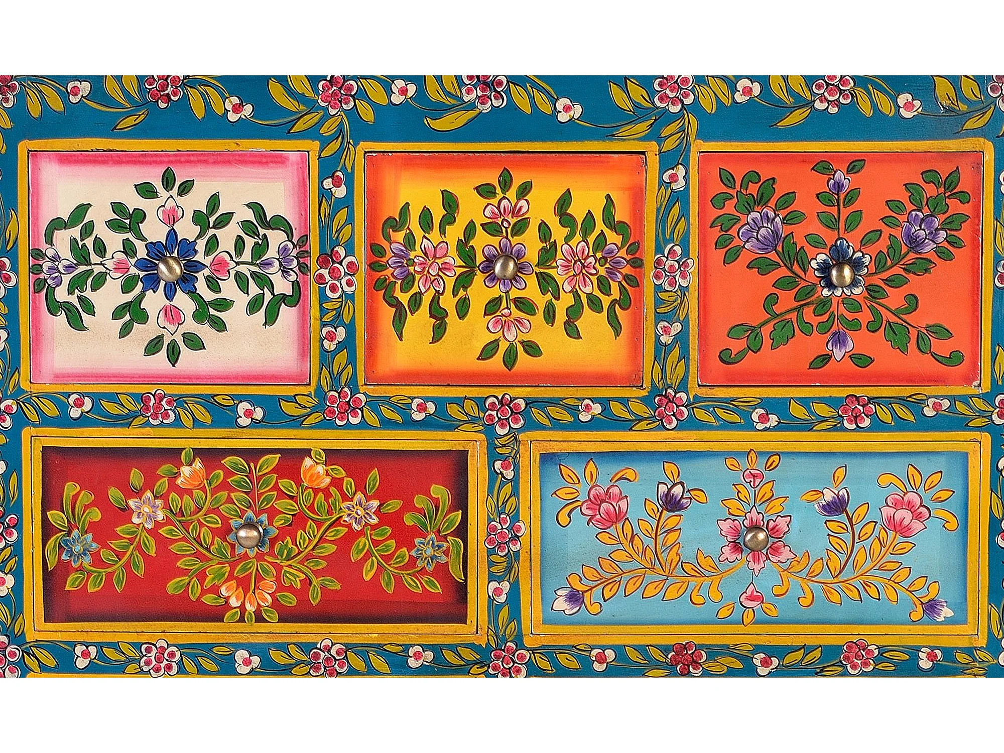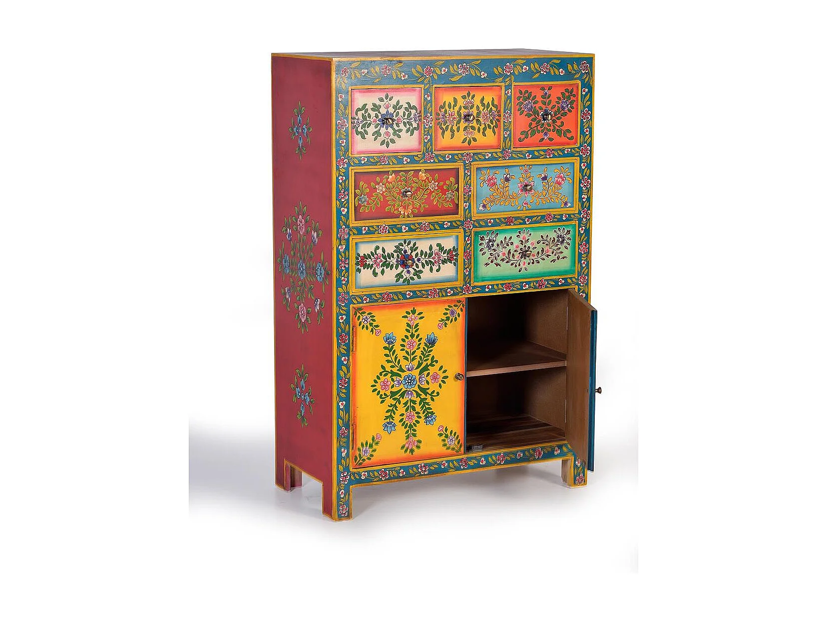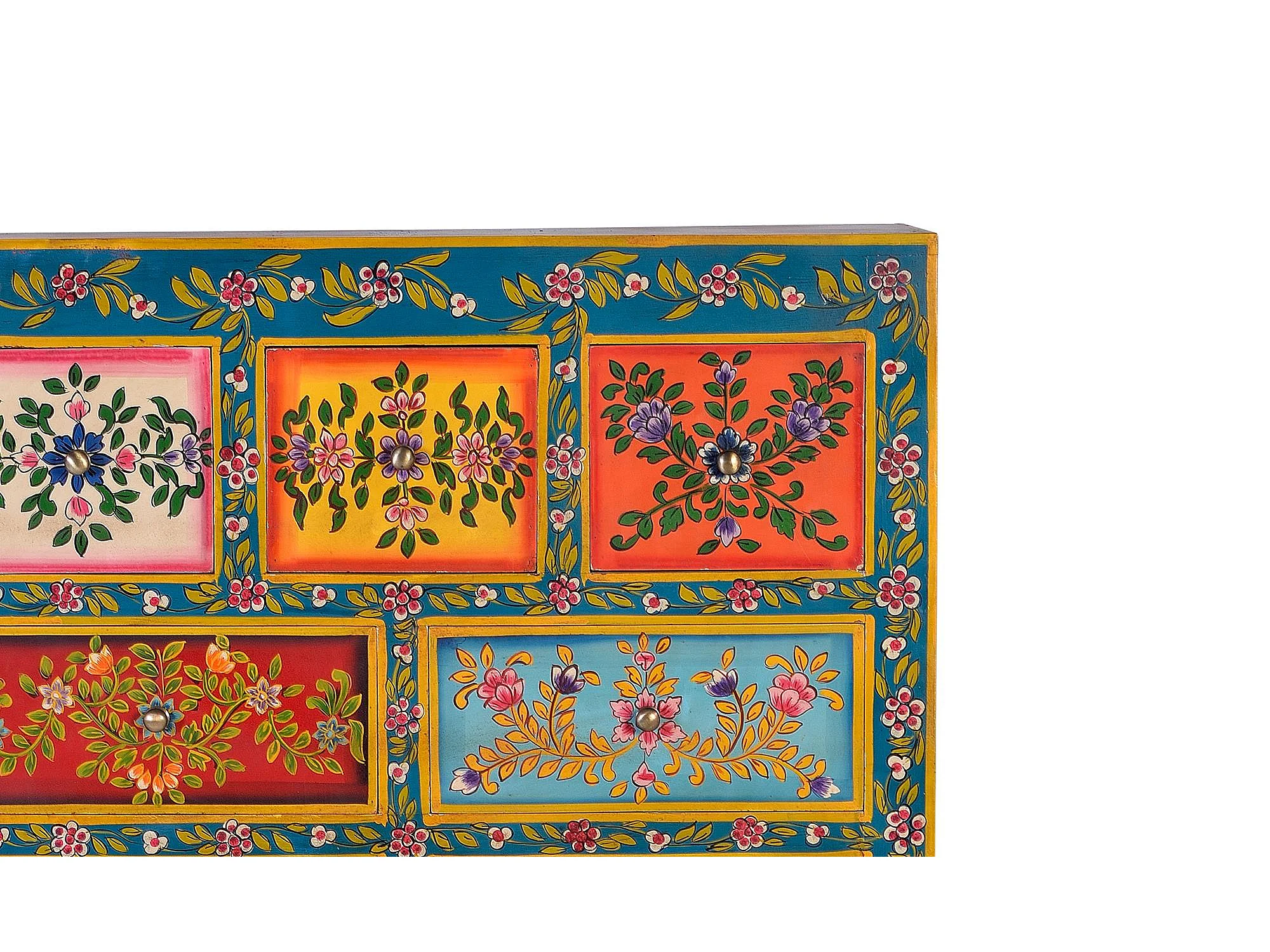 Commode en bois de manguier avec détails multicolores peints à la main