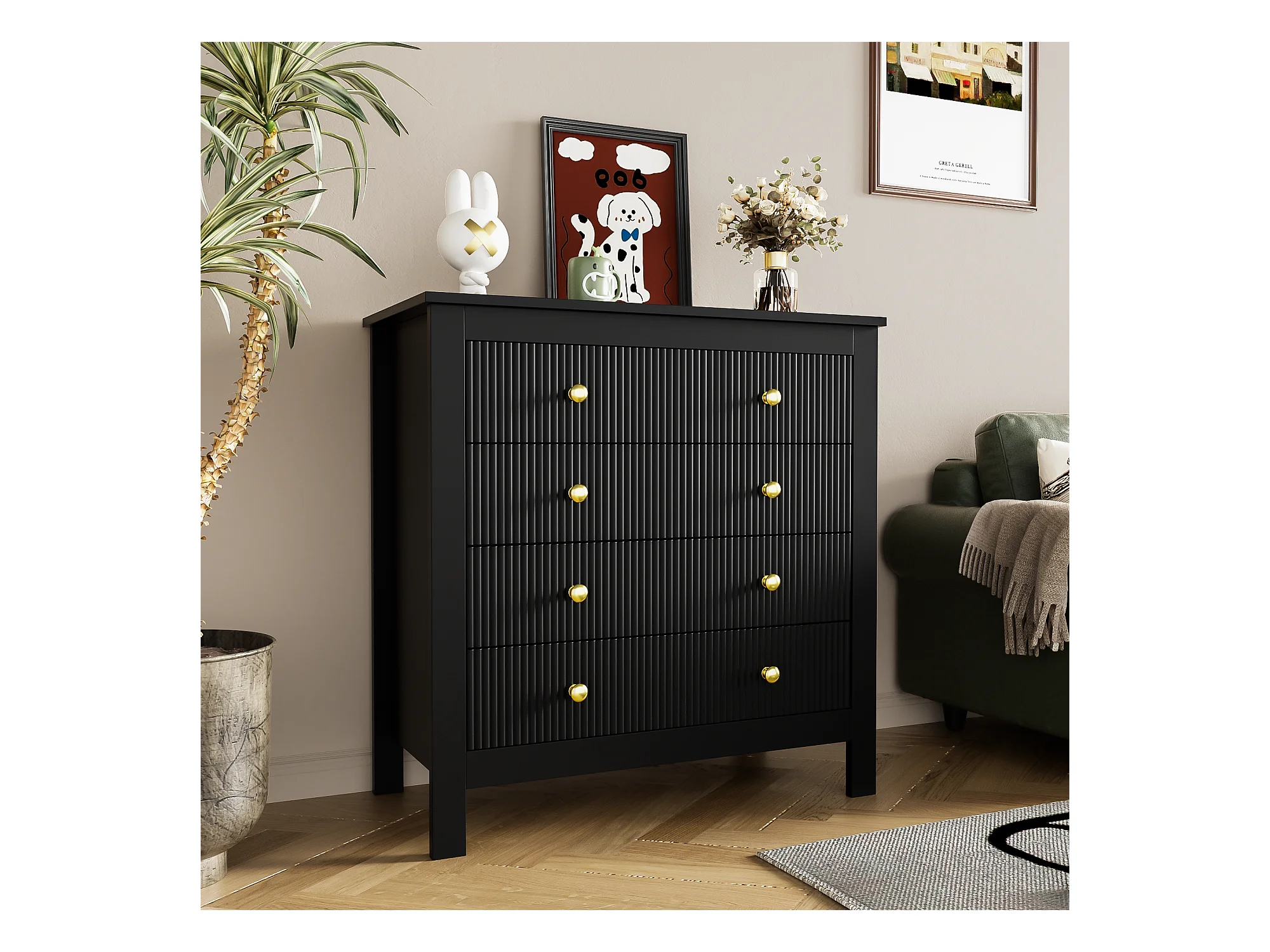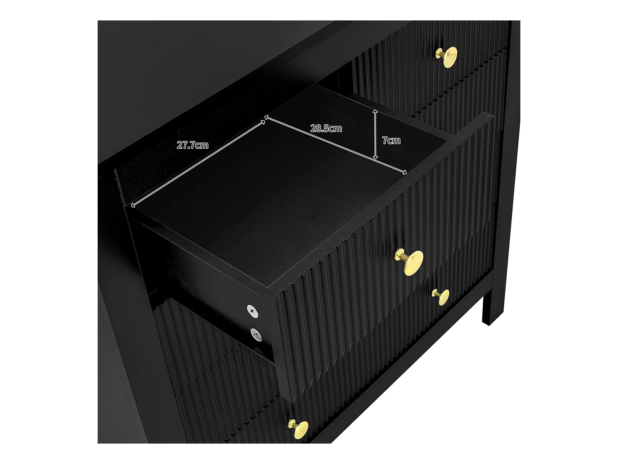 Buffet 79x39.5x80.5cm avec 5 tiroirs, corps en noir avec poigneés dorés