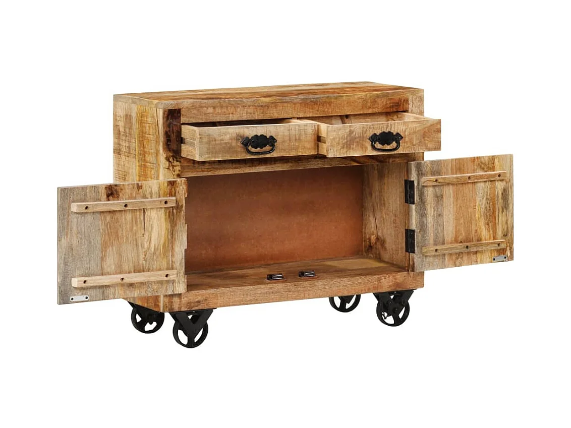 Buffet 110x30x65 cm Bois de manguier massif brut et acier