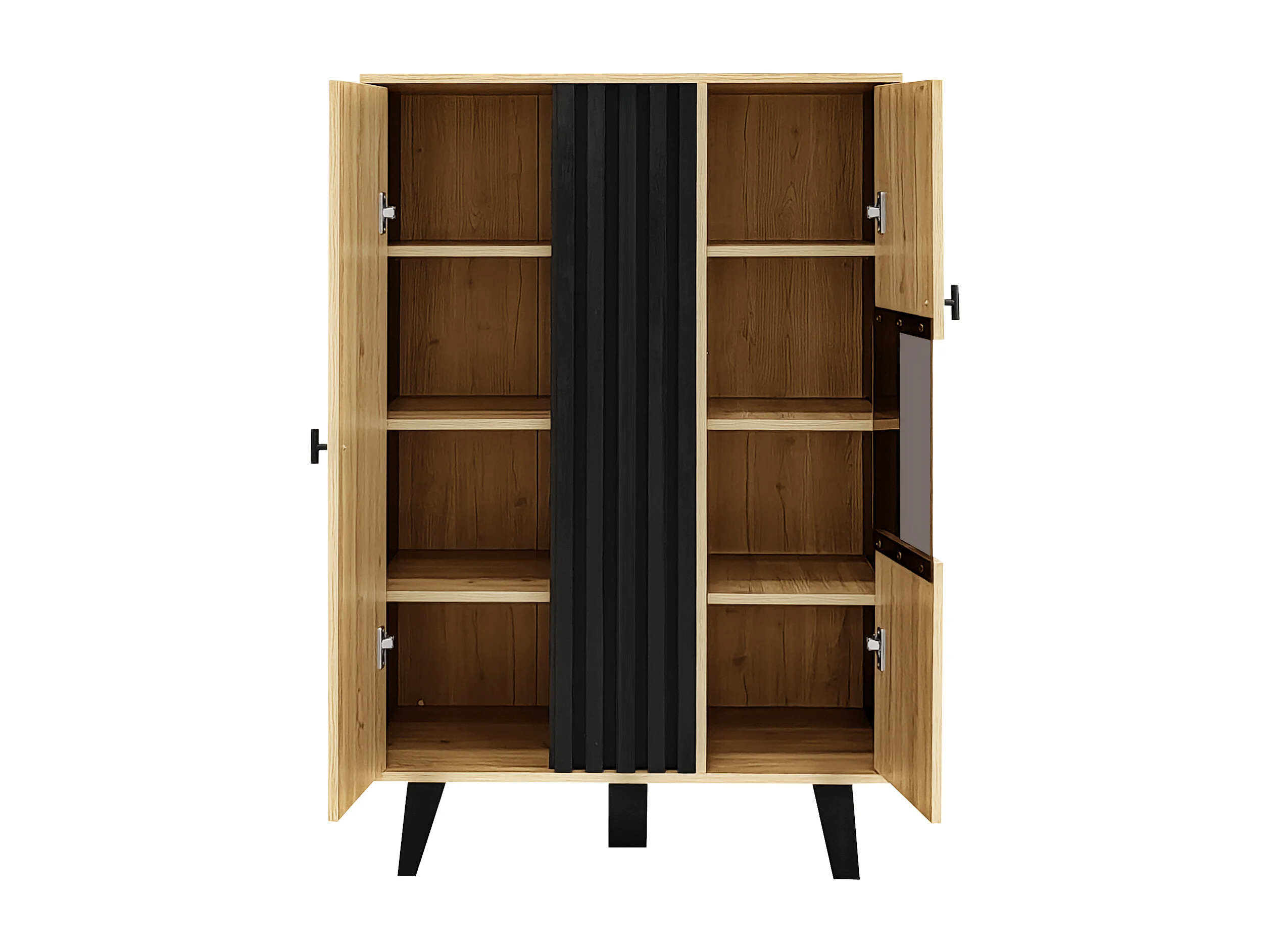 Buffet de cuisine 120x32x92cm avec 3 portes ajourées, corps en placage bois naturel clair