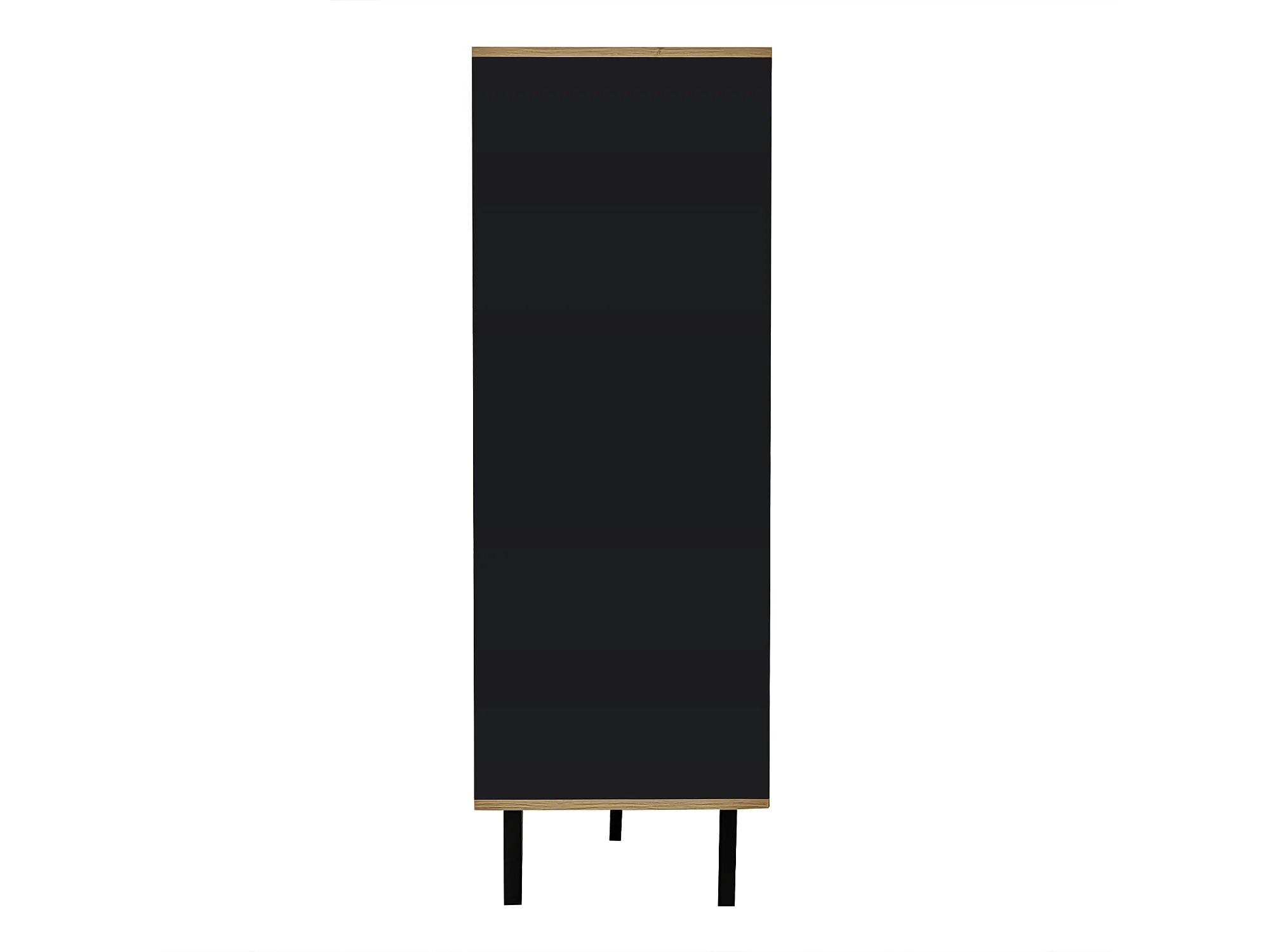 Buffet de cuisine 140x40x80cm avec 3 tiroirs, 1 porte et 3 tablettes en verre, LED inclus, corps en placage woodgrain naturel et noir