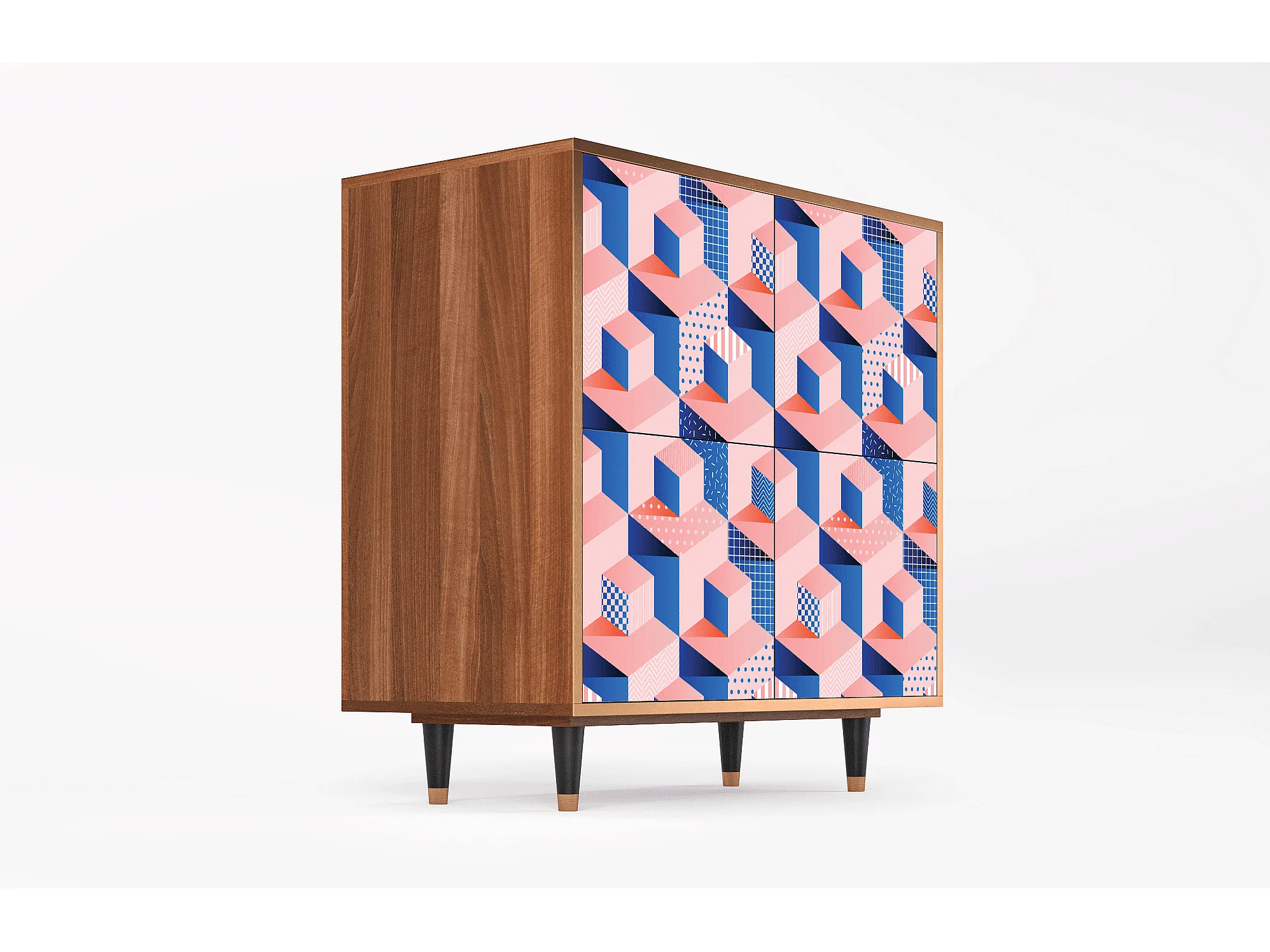 Buffet - 94x96x48 cm - BS3 - Pinky Squares, Noyer