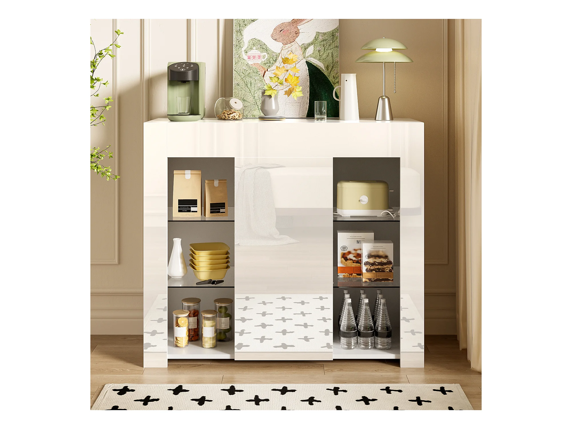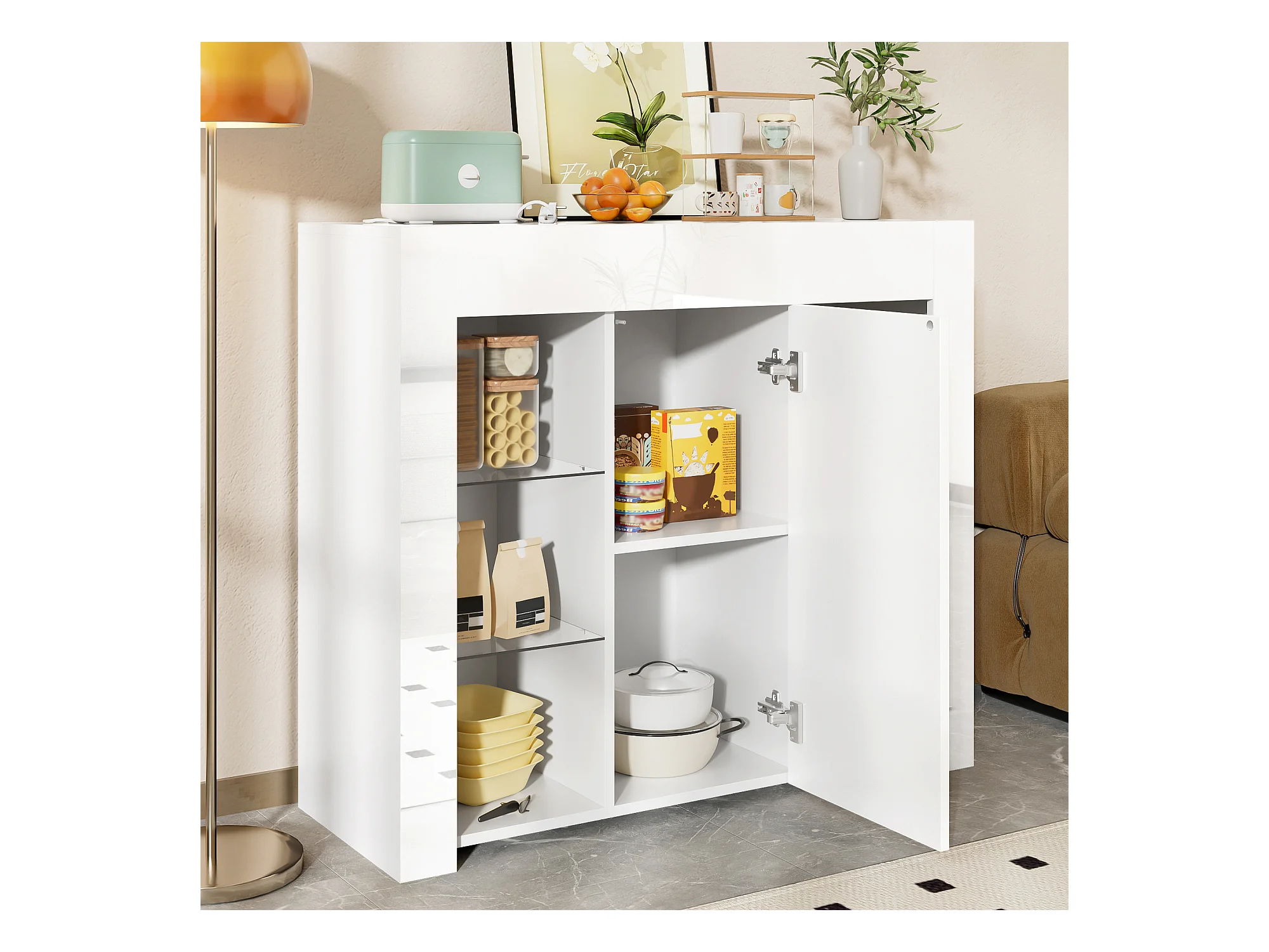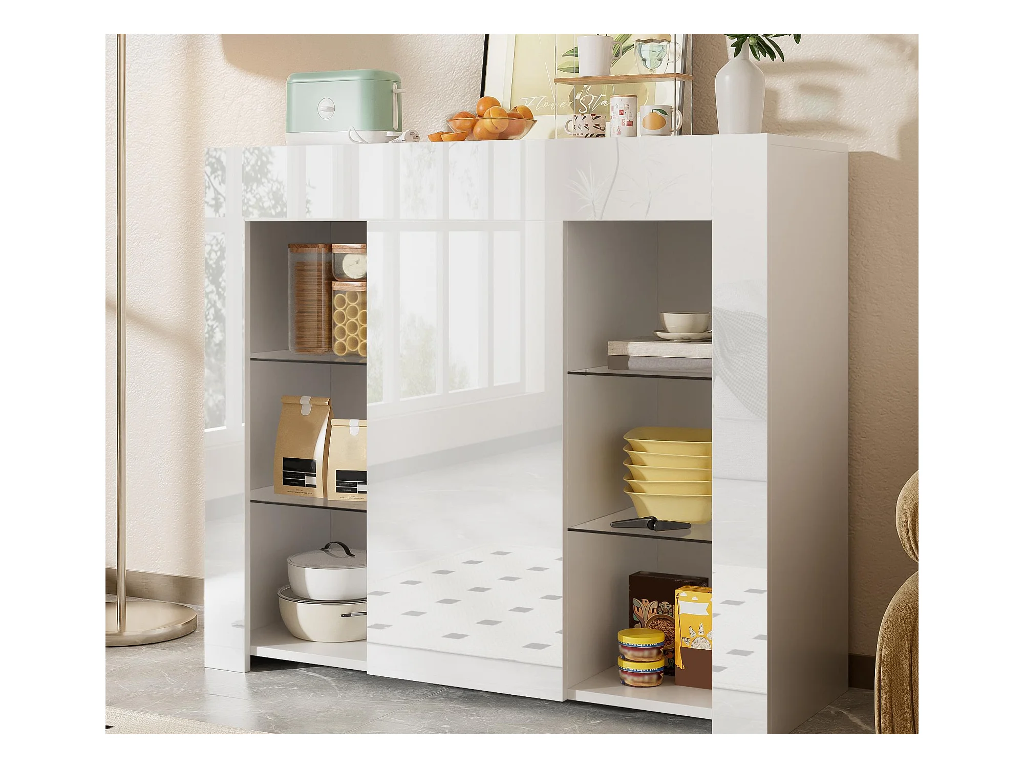 Buffet brillant moderne - 4 portes avec étagères réglables - Blanc