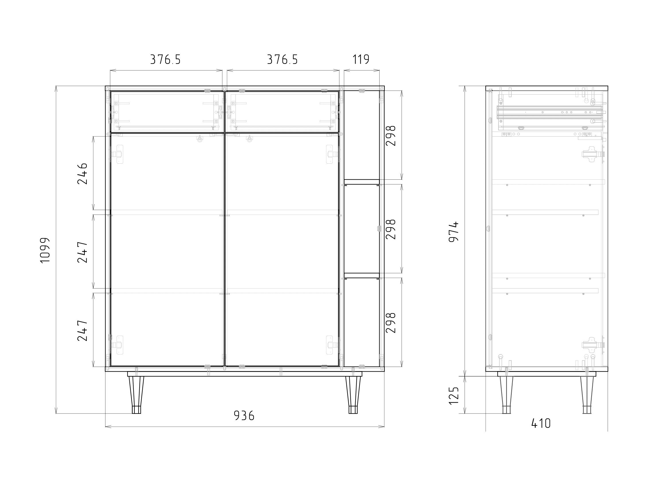 BS6 – Le Confort dans Chaque Détail Conçu pour une organisation sans effort, le BS6 offre des tiroirs compacts et accessibles pour répondre à vos besoins quotidiens. Que ce soit pour vos clés, accessoires ou objets précieux, tout a désormais sa place dédiée—fini les recherches interminables, fini le désordre. Avec son design élégant et raffiné, le BS6 s’intègre parfaitement à tout espace, apportant à la fois style et fonctionnalité à votre intérieur. L’équilibre parfait entre praticité et élégance, il simplifie votre quotidien tout en gardant vos essentiels à portée de main. Chaque façade est réalisée avec précision, mettant en valeur une impression UV haute qualité qui donne profondeur et caractère au design. La surface est ensuite protégée par un vernis spécial, garantissant une résistance aux rayures et à la décoloration. Le BS6 repose sur des pieds en bois robustes avec des accents métalliques raffinés, alliant stabilité et sophistication. Conçus avec soin, ils élèvent la pièce et apportent une sensation de légèreté tout en garantissant une structure solide. Faisant partie d’une collection exclusive comprenant 16 modèles, 6 couleurs élégantes et 208 options d’impressions uniques, le BS6 vous permet de choisir un design qui reflète véritablement votre style personnel. Bien plus qu’un meuble de rangement, c’est un indispensable du quotidien. Dimensions : Largeur : 96 cm Hauteur : 110 cm Profondeur : 41 cm