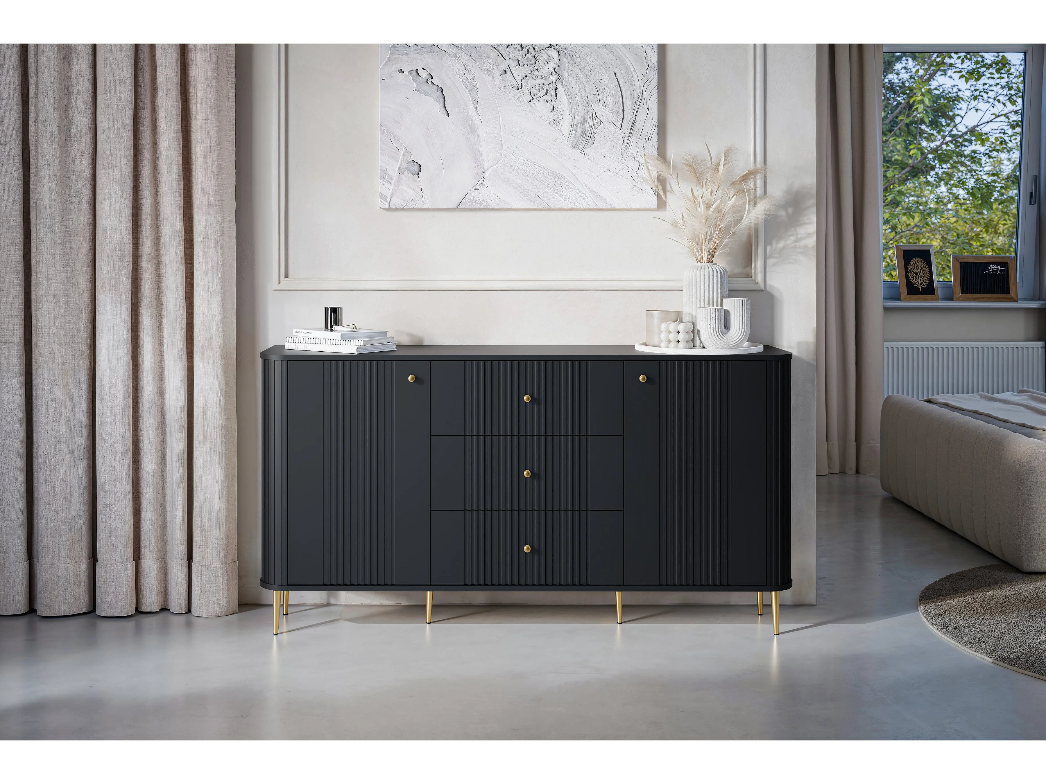 Buffet à 2 portes et 3 tiroirs avec pieds en métal Liberty, 160 x 85 cm
