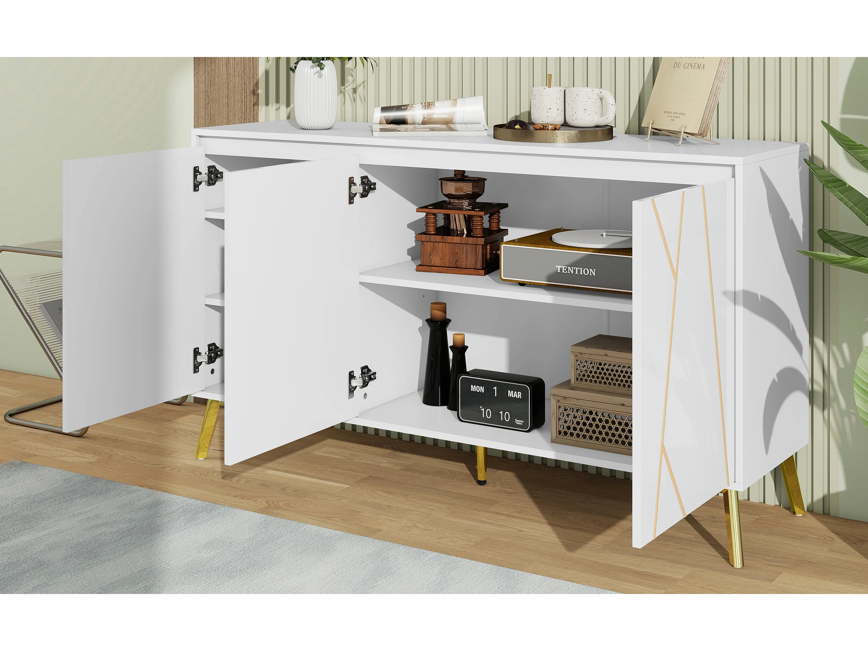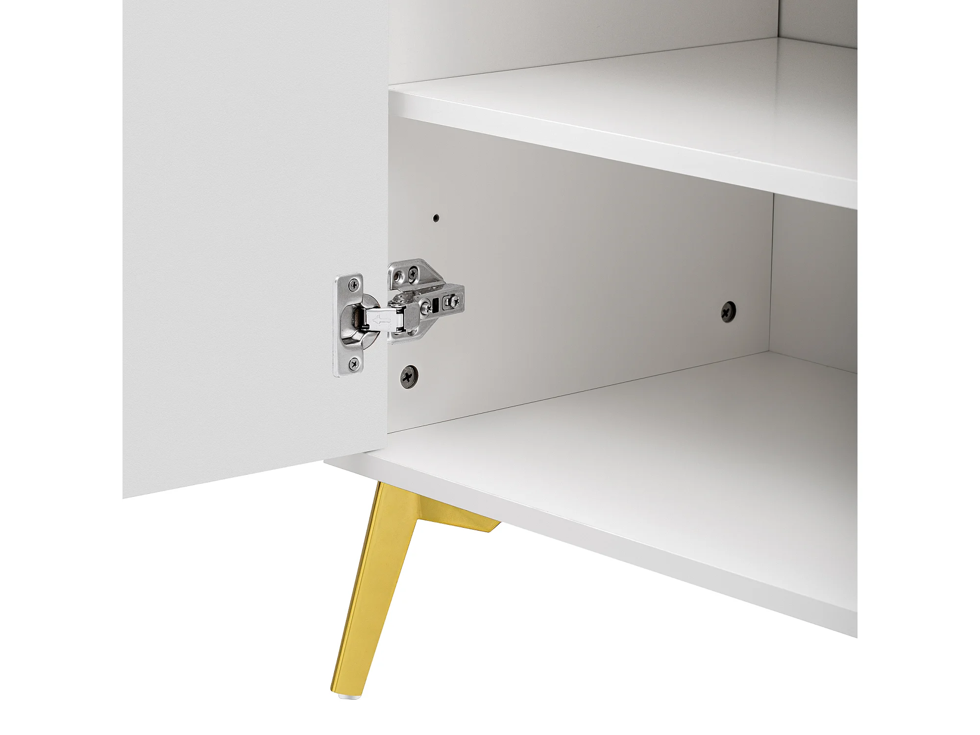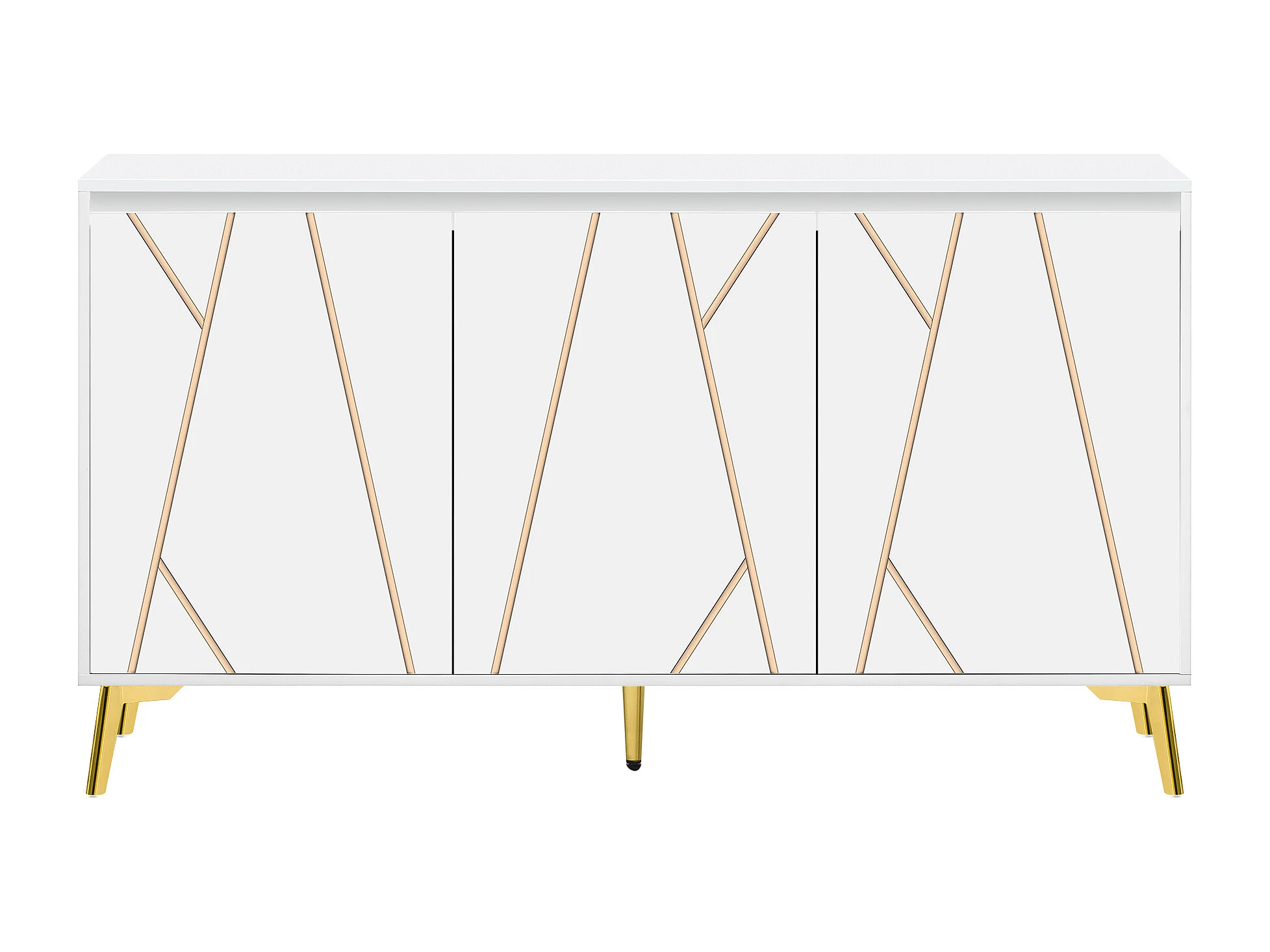 Buffet à 3 portes - Sans poignées - Pieds dorés - Blanc