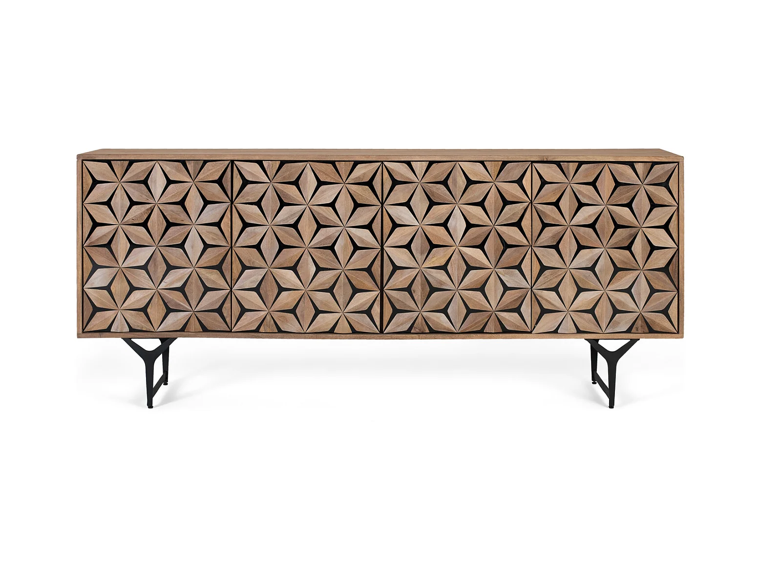 Buffet à 4 portes fabriqué à la main en bois de manguier 177 cm