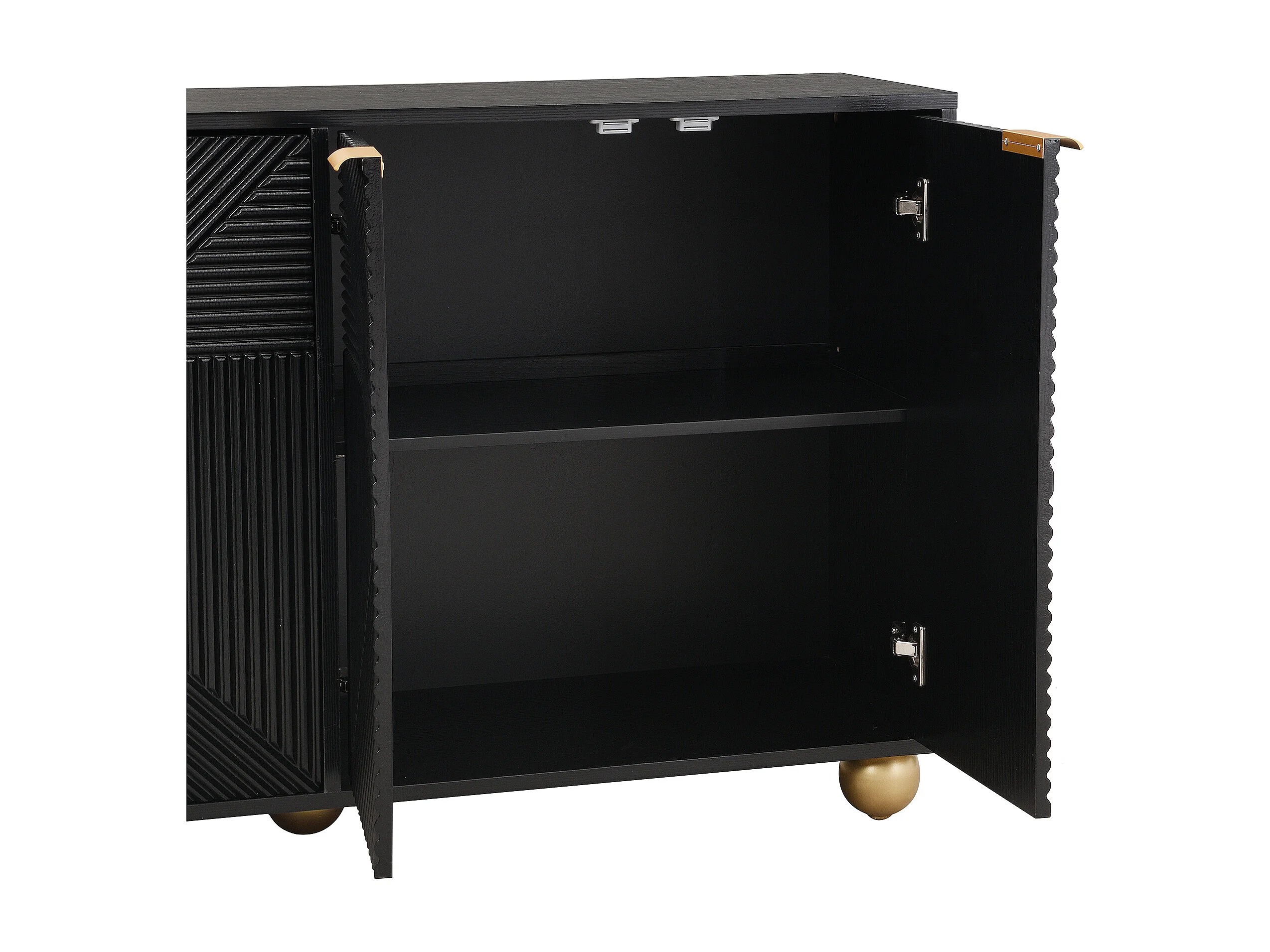 Buffet à 4 portes moulées - 120 x 35 x 71.5 cm - avec étagères réglables - poignées en métal et pieds en forme de boule - MDF - noir