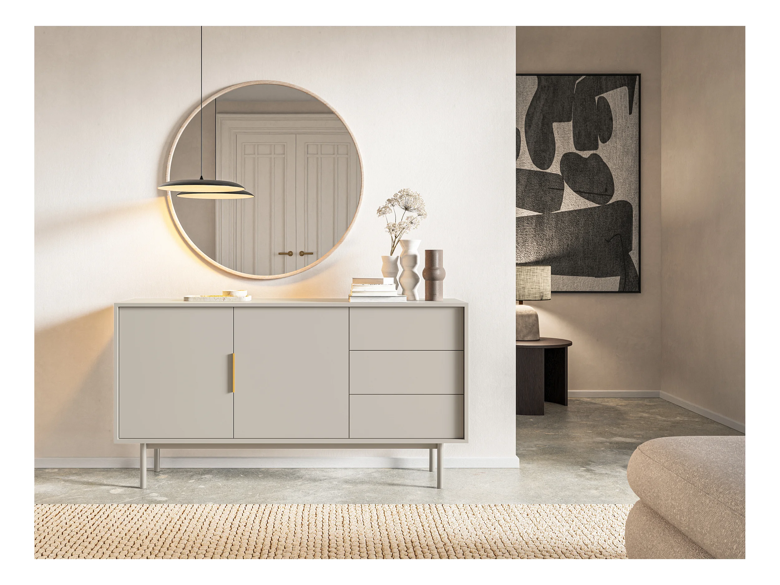 Buffet à deux portes - 154 cm - et trois tiroirs - taupe (gris-beige) - VIVIARO