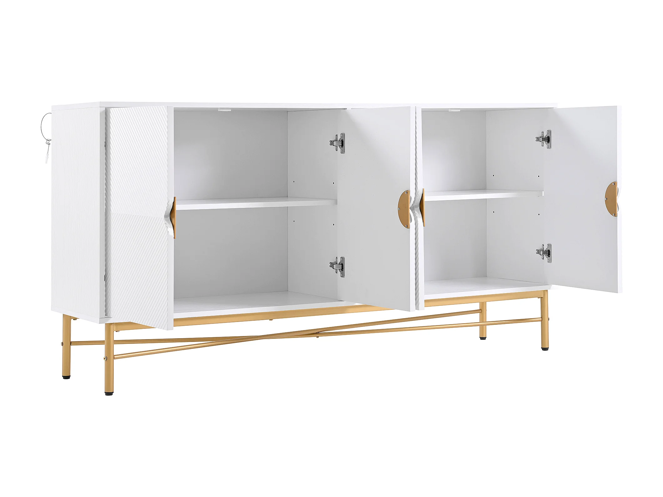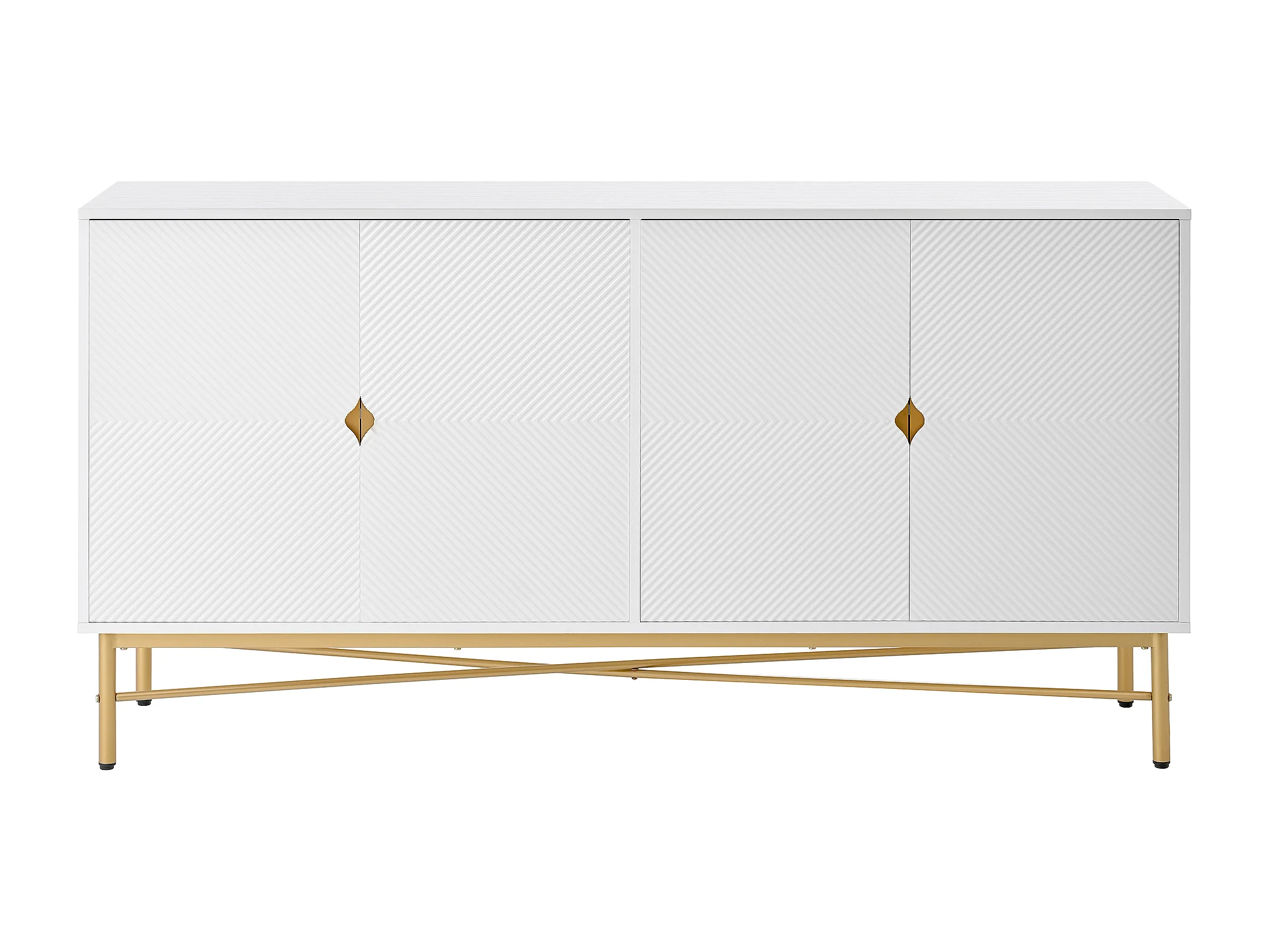 Buffet à texture en relief - 160 x 40 x 82 cm - avec 4 portes - pieds laqués brillants - MDF + aggloméré - blanc