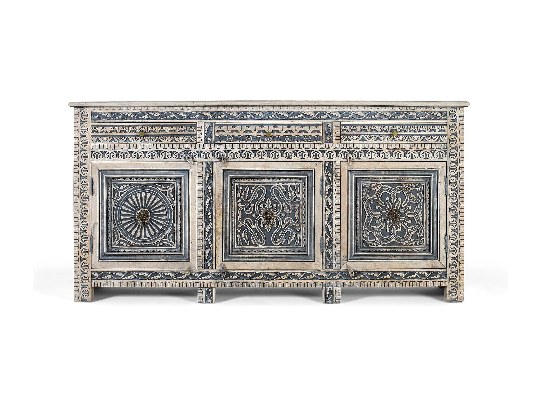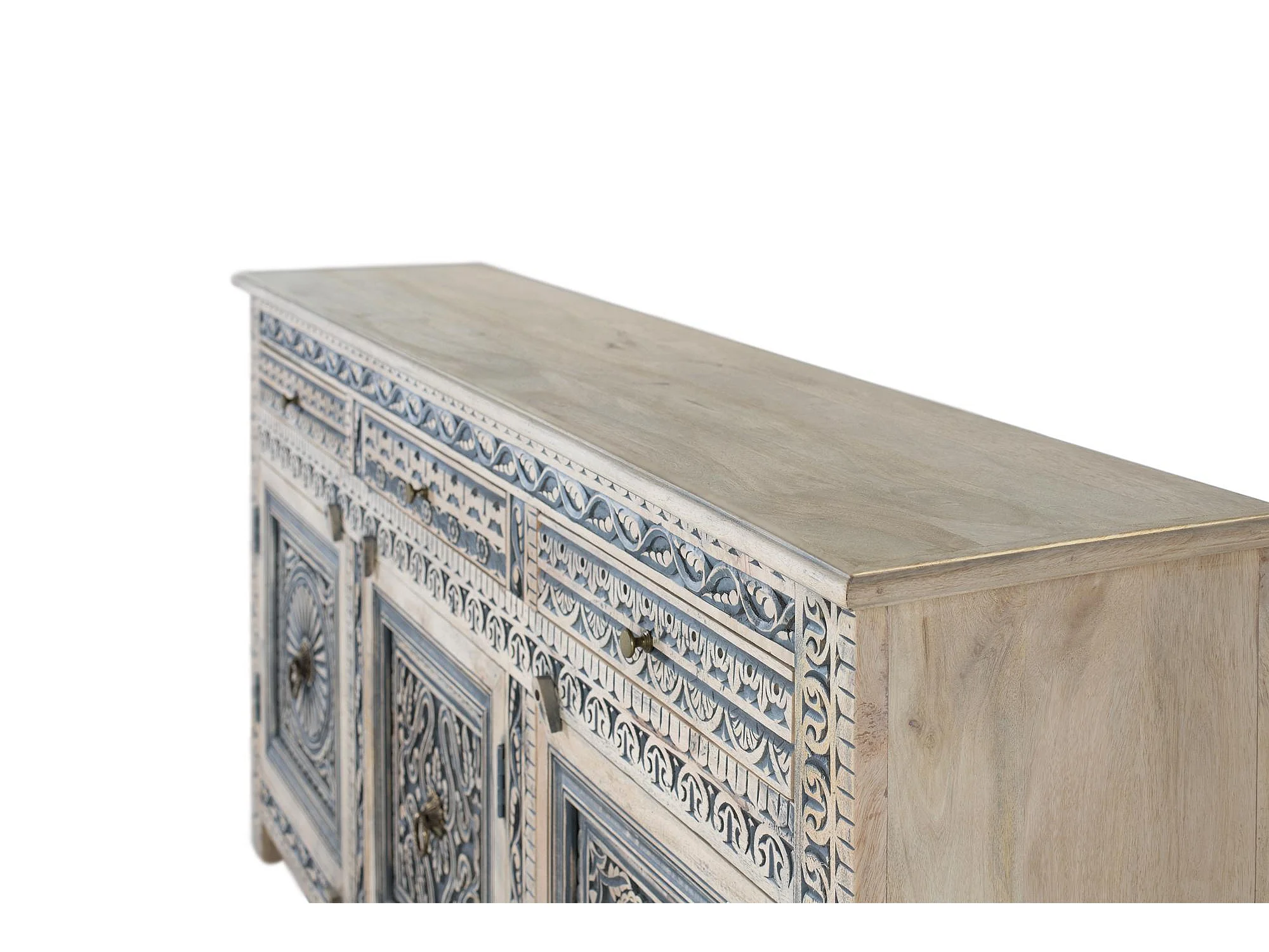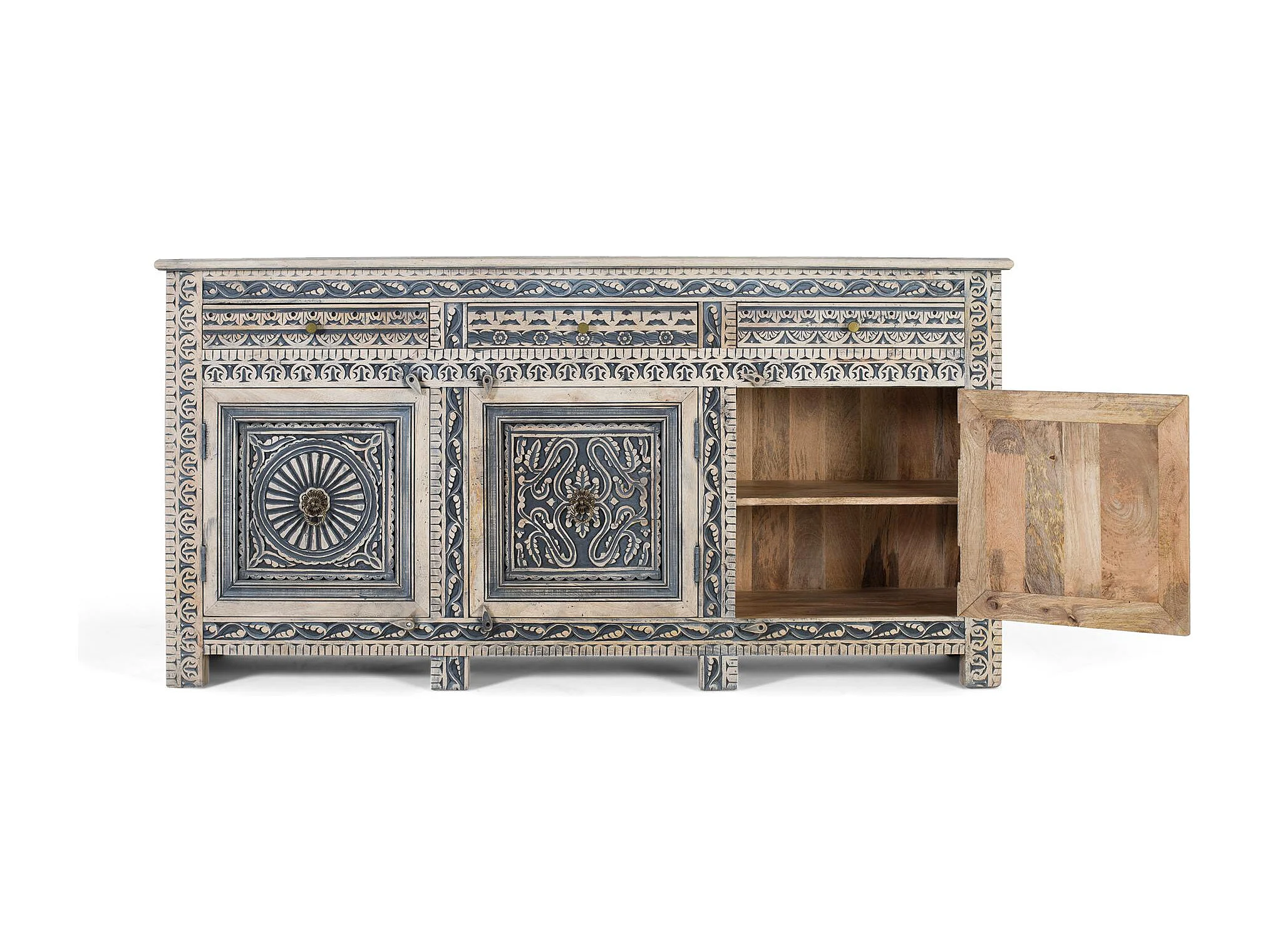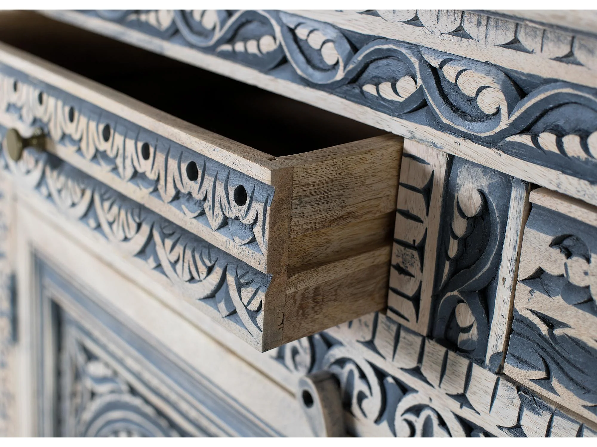 Buffet sculpté à la main avec deux tiroirs et deux portes