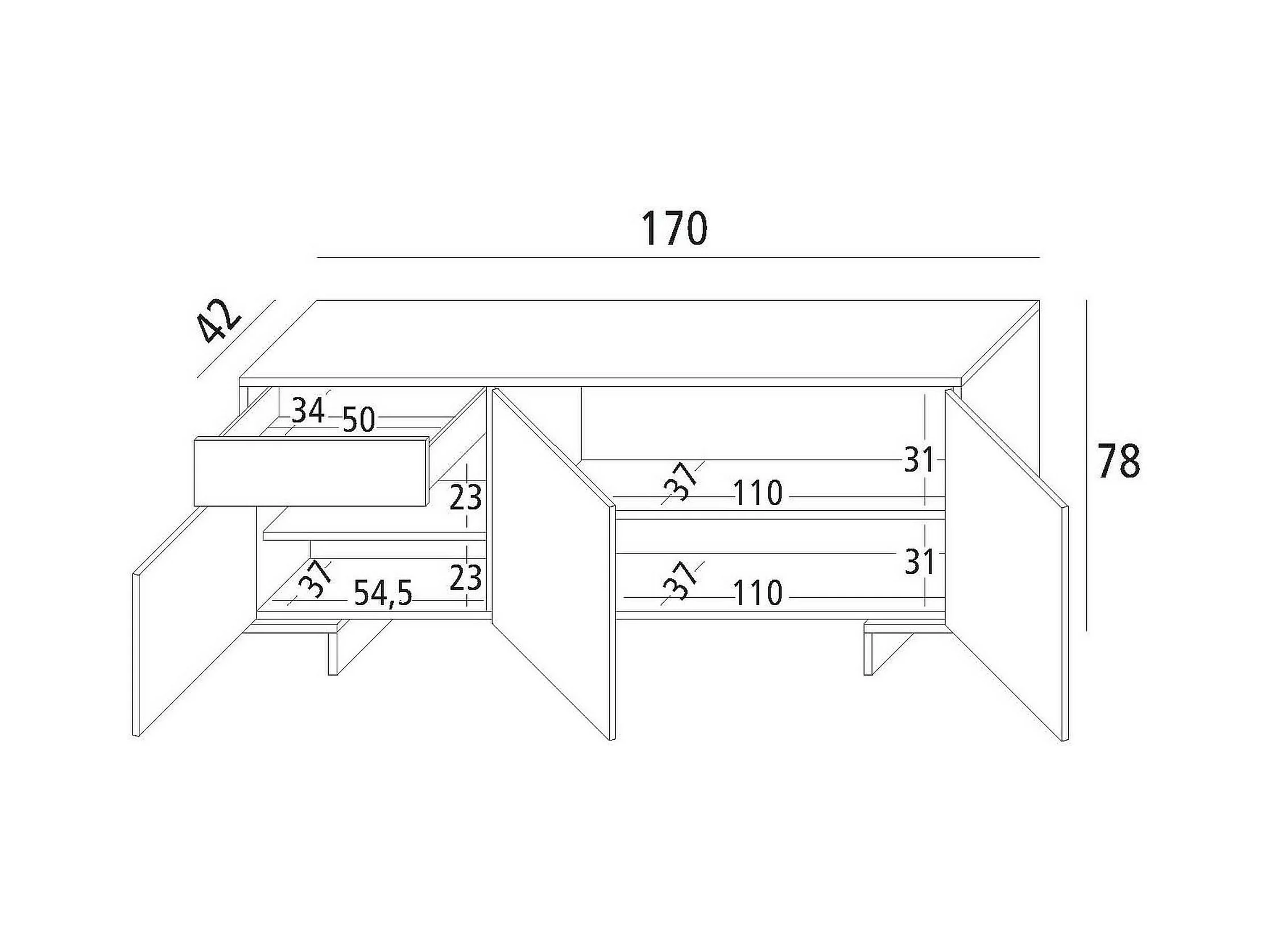 Buffet Betel, Buffet du salon, Commode de salon, Garde-manger de cuisine, 160x35h80 cm, Blanc et Noir