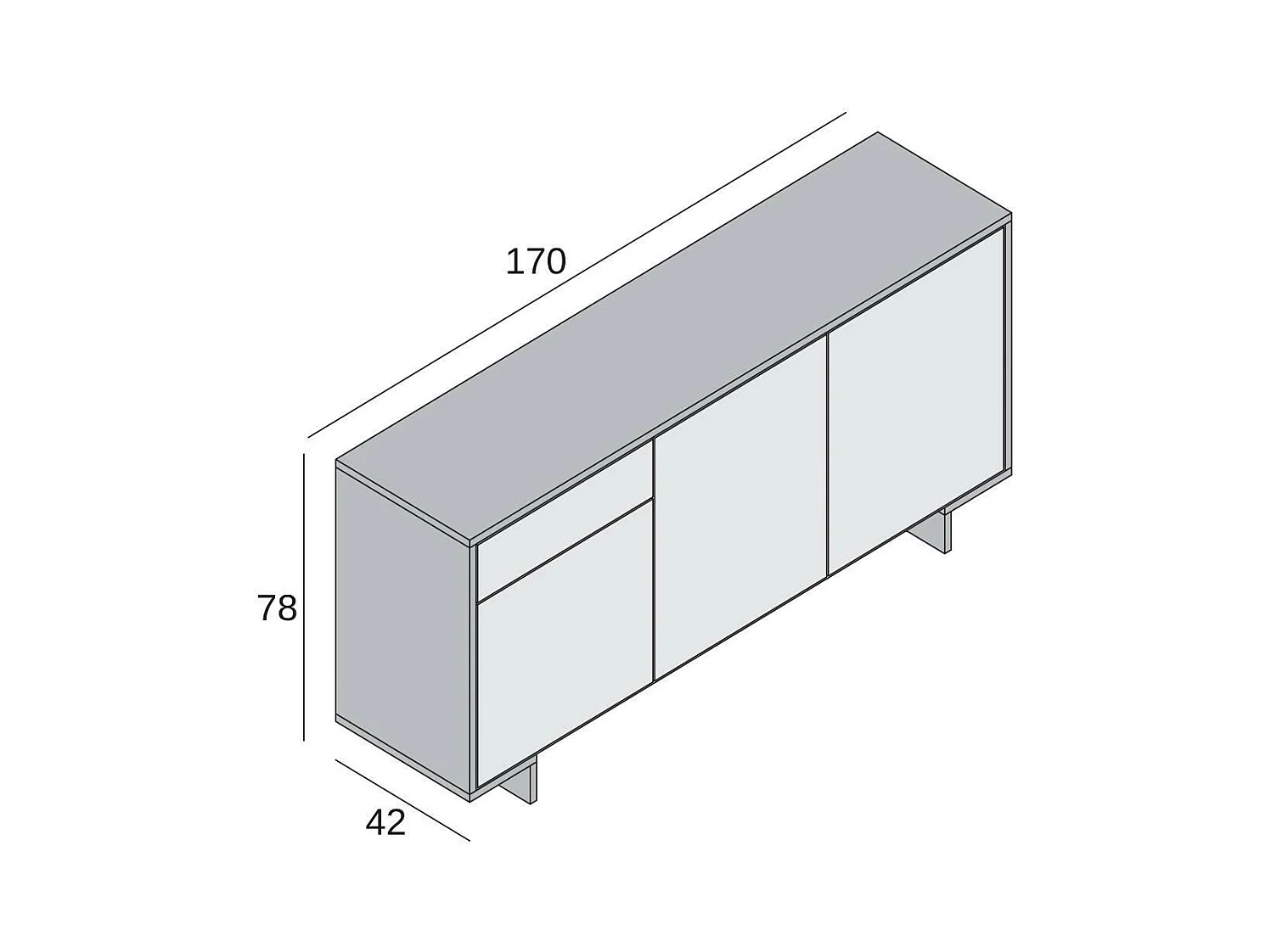 Buffet Meridian, Buffet du salon, Commode de salon, Garde-manger de cuisine, 123x35h77 cm, Chêne
