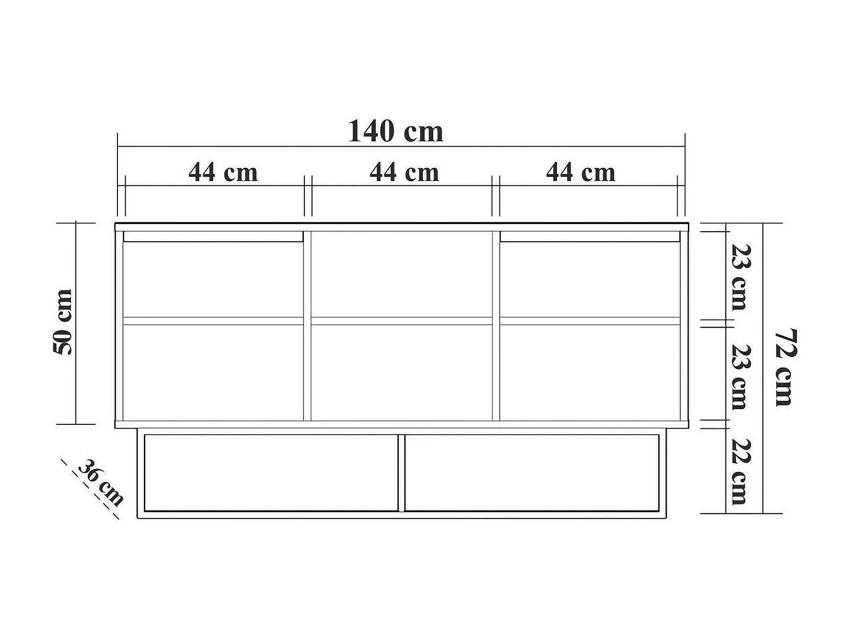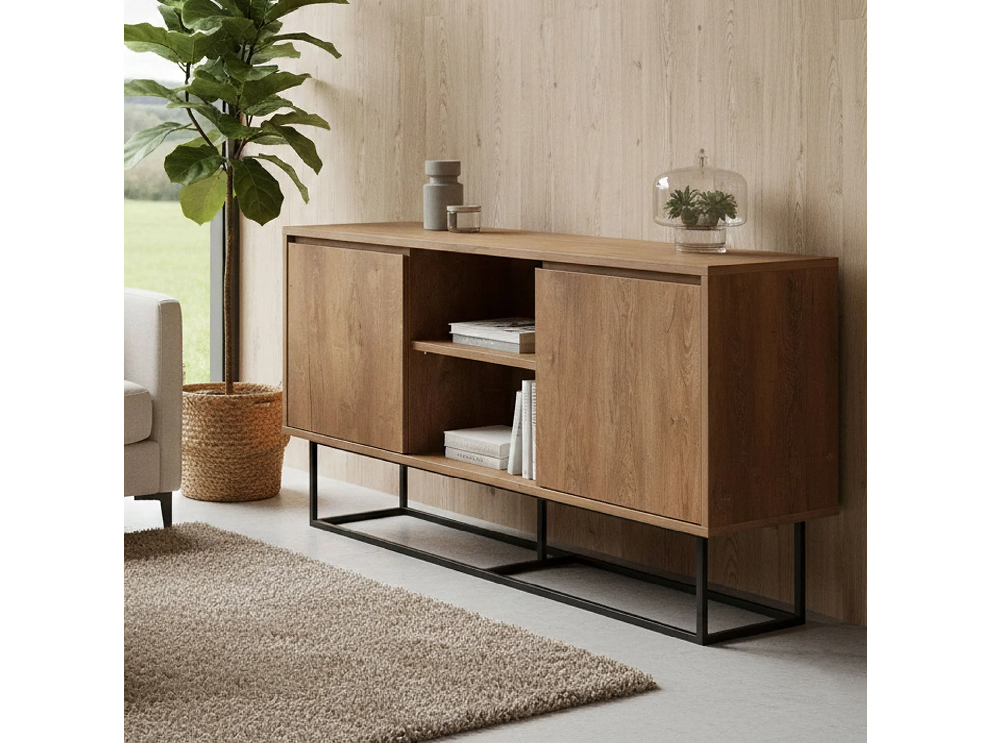 Buffet Alrakis, Buffet du salon, Commode de salon, Garde-manger de cuisine, 140x36h72 cm, Noyer et Noir