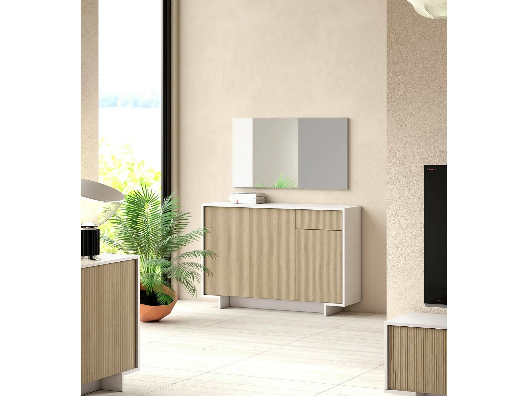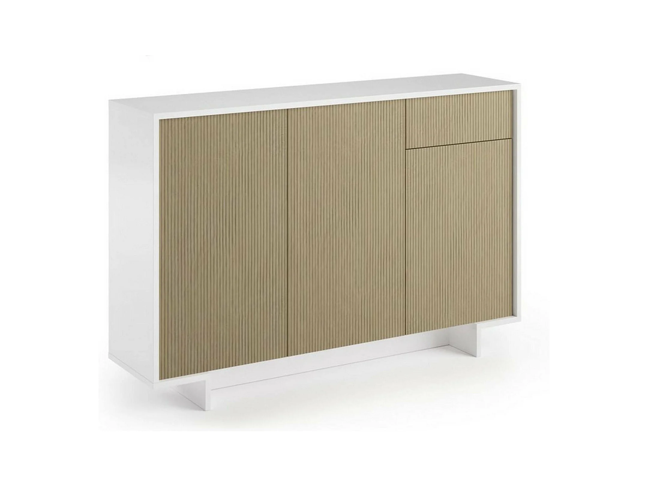 Buffet Aneto, Buffet de salon, Buffet de salon avec 3 portes et 1 tiroir, 100% Made in Italy, 134x35h87 cm, Blanc et Beige