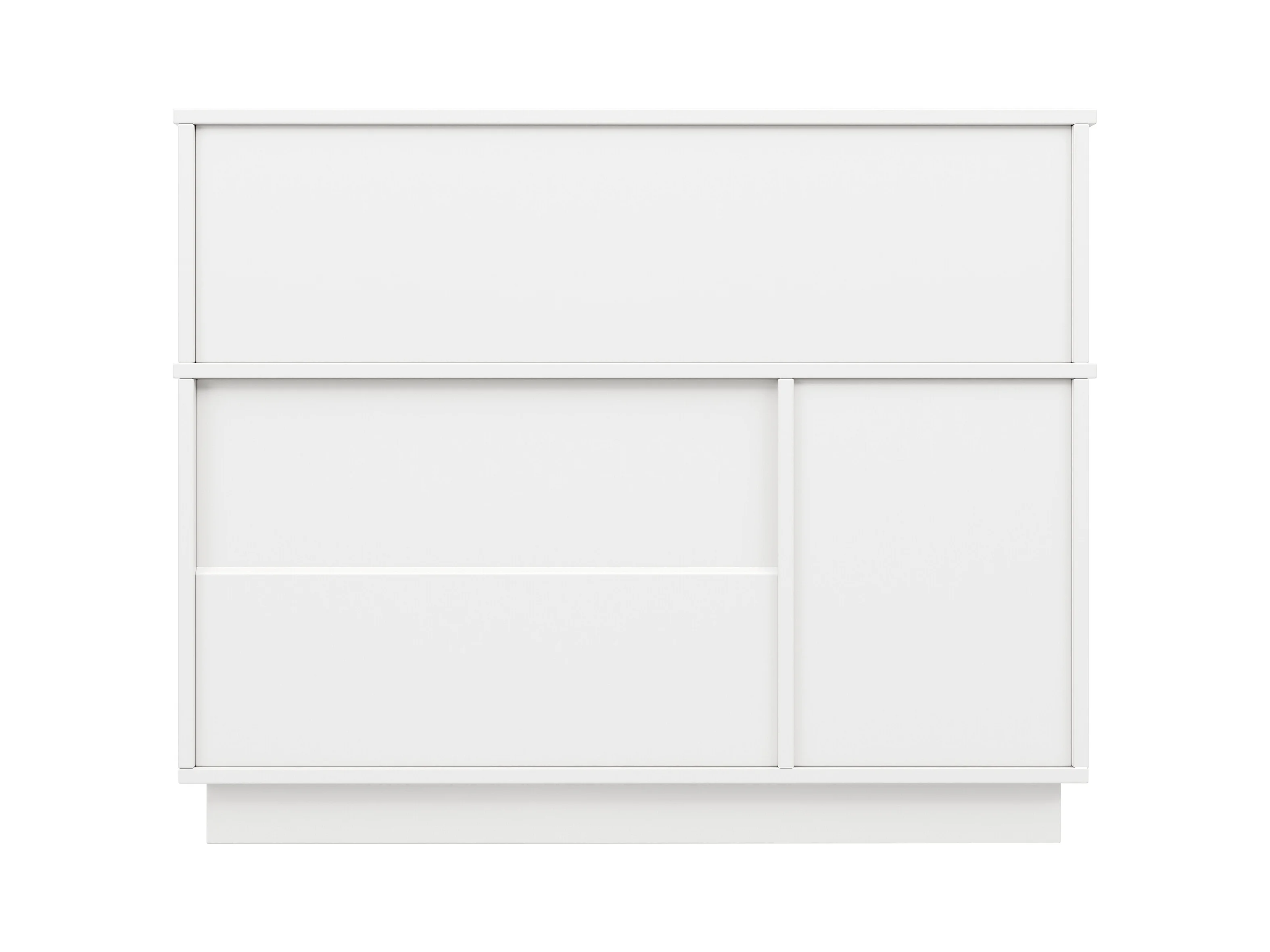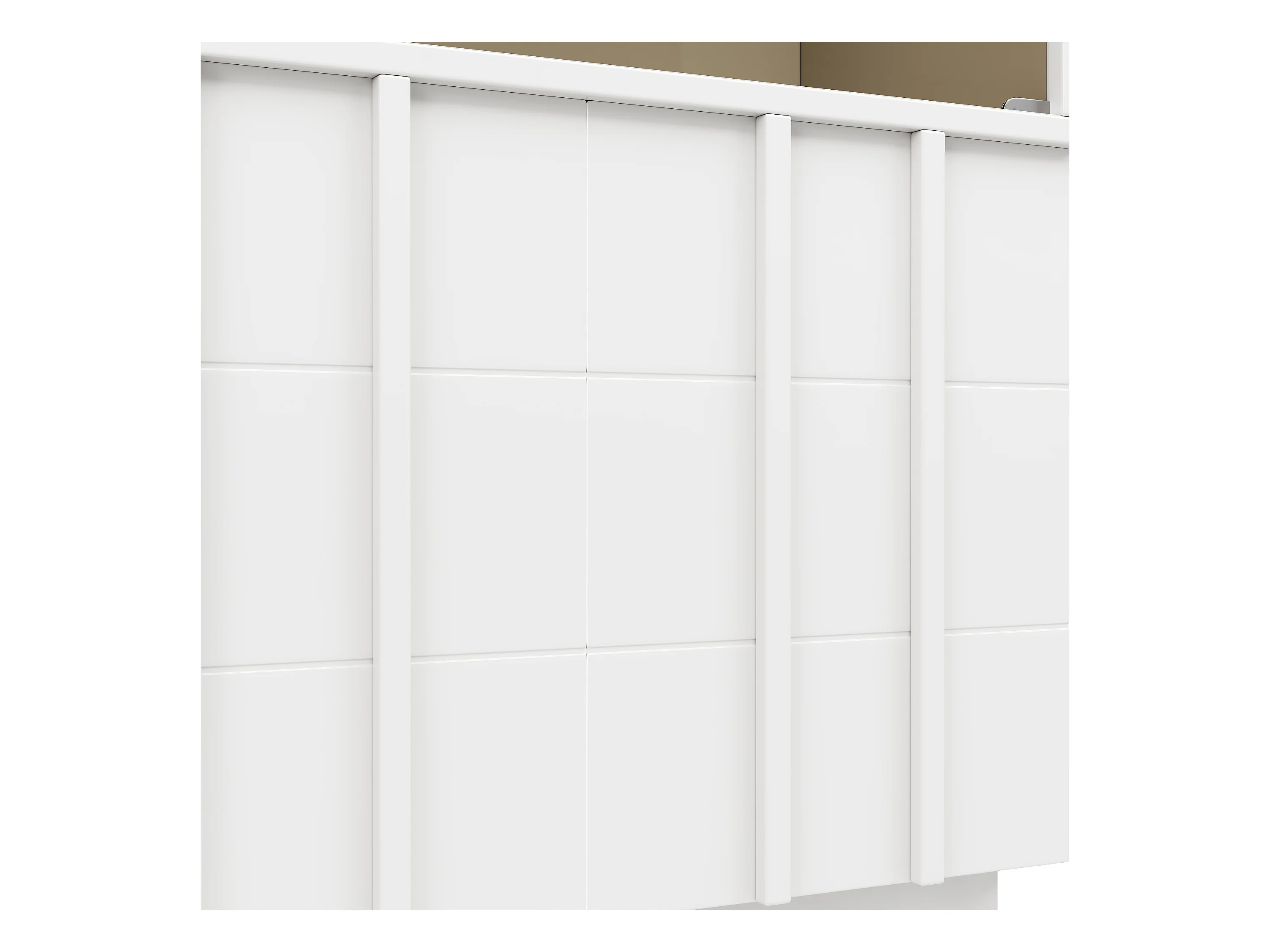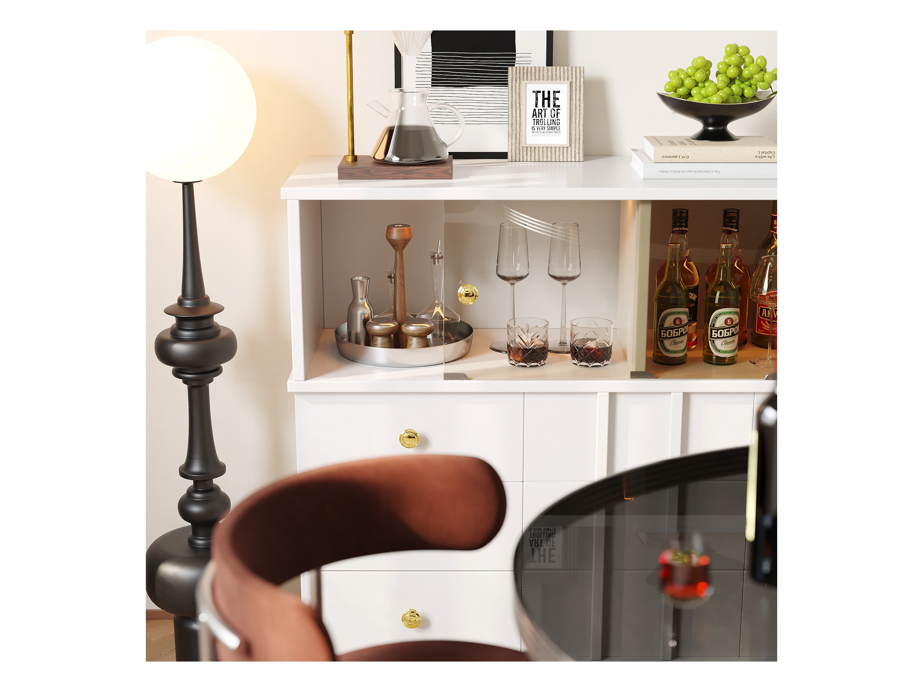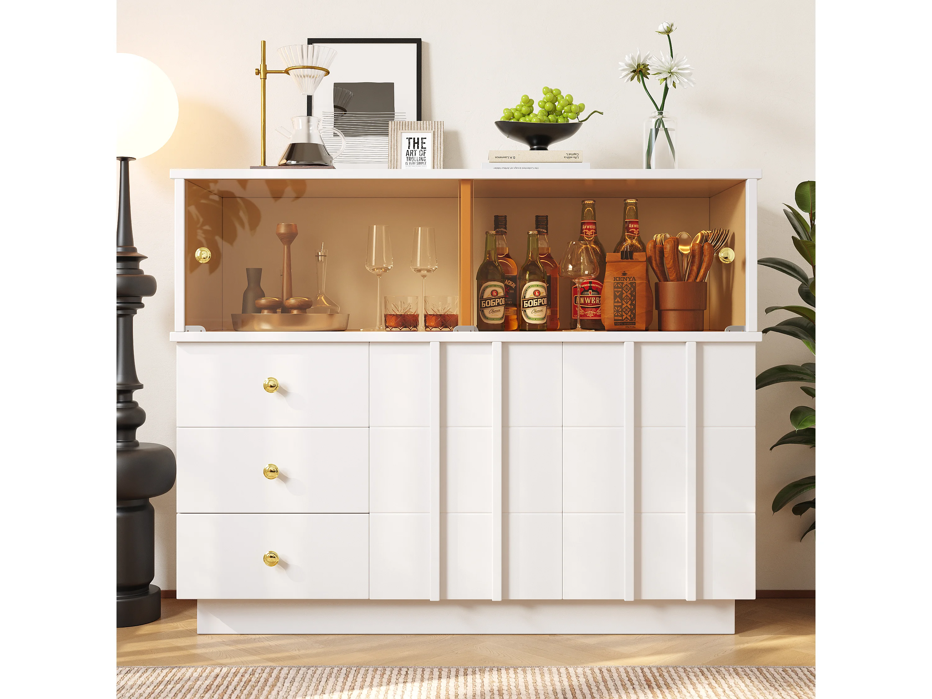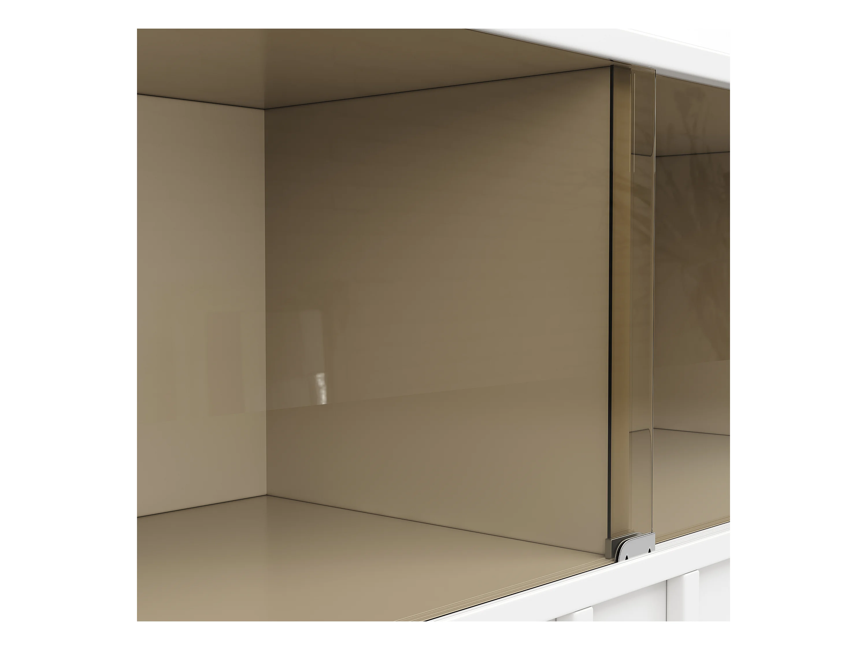 Buffet, armoire de cuisine avec 4 portes et 3 tiroirs - 120 x 33 x 95 cm - Bois MDF et portes en verre fumé - Blanc