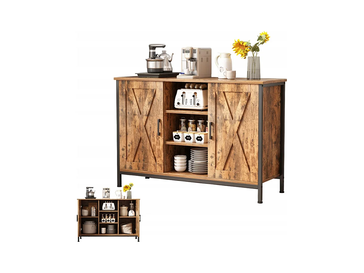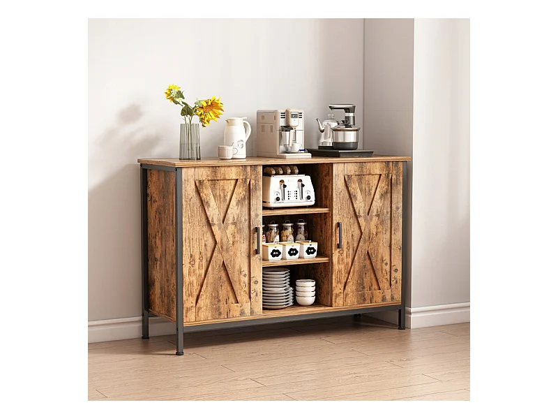 BUFFET ARMOIRE LATÉRALE AVEC ÉTAGÈRES OUVERTES COMMODE VINTAGE CUISINE SALON LOFT