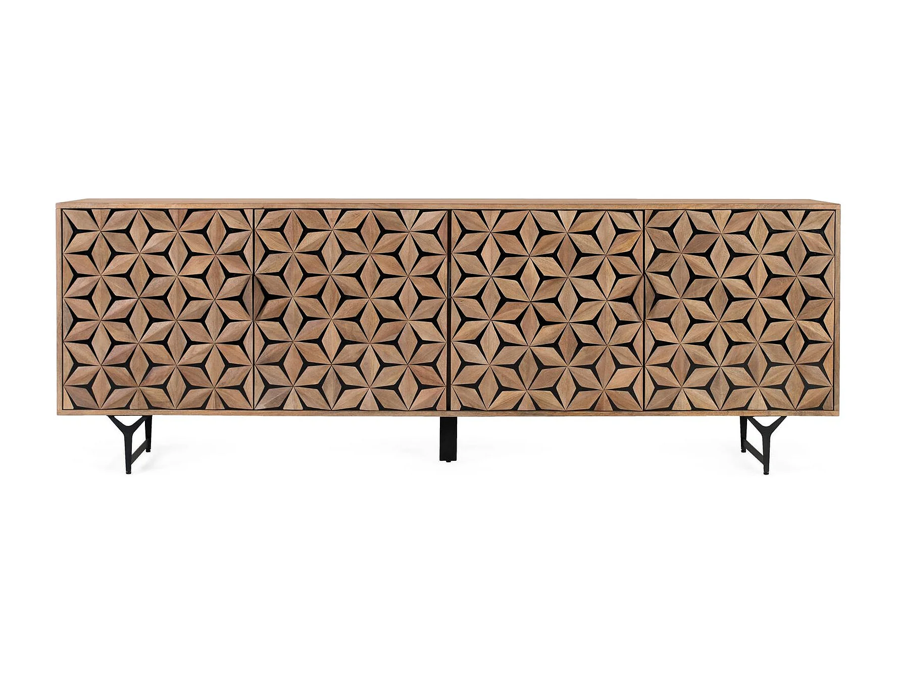 Buffet artisanal en bois de manguier avec 4 portes, 220 cm