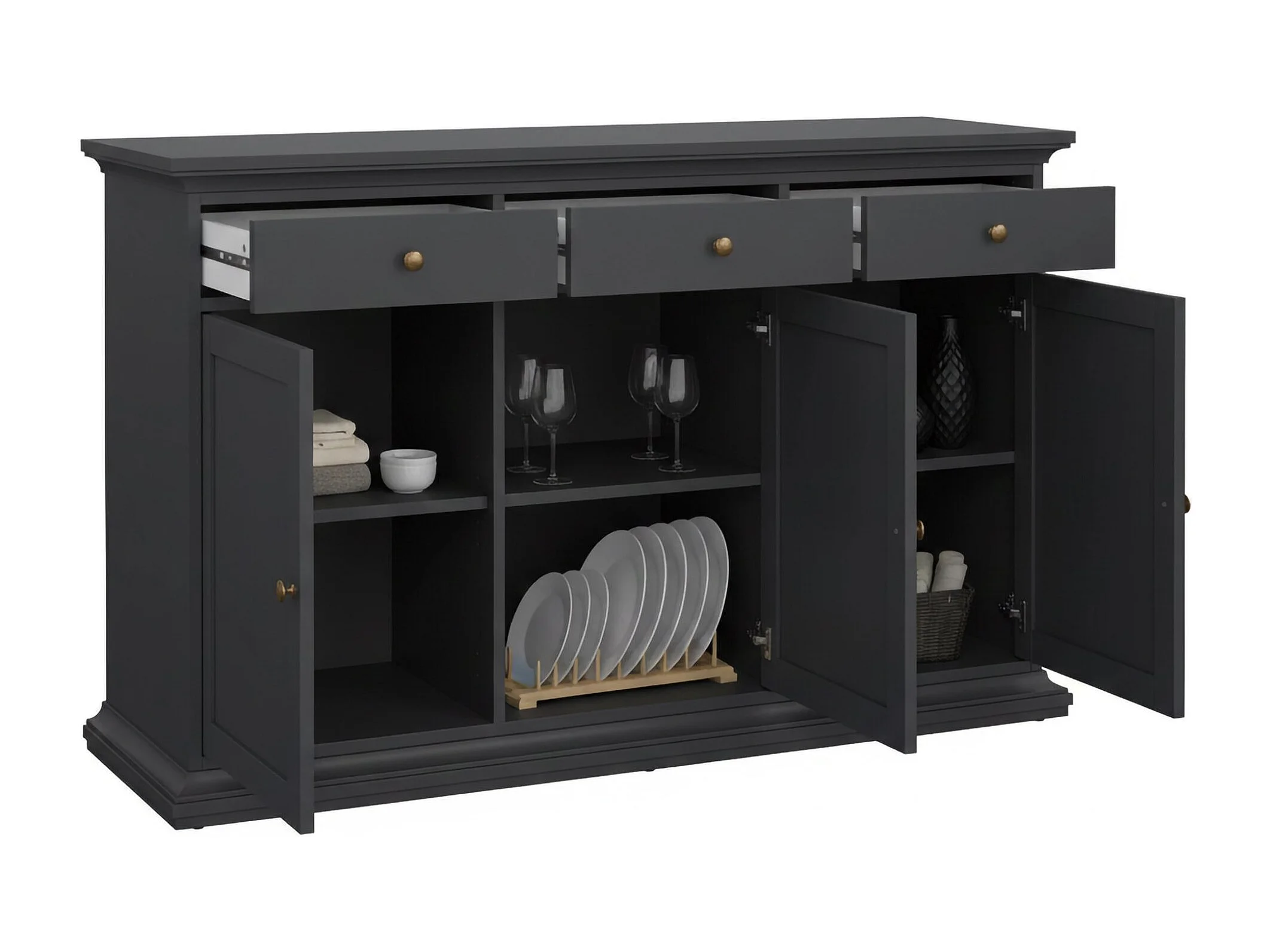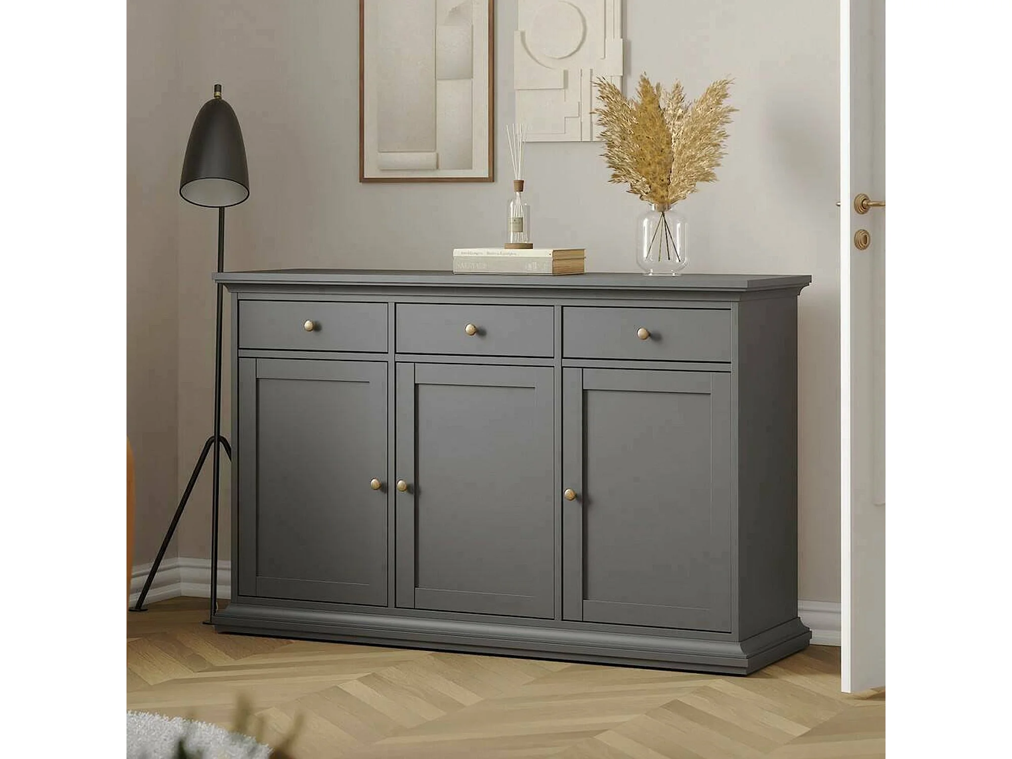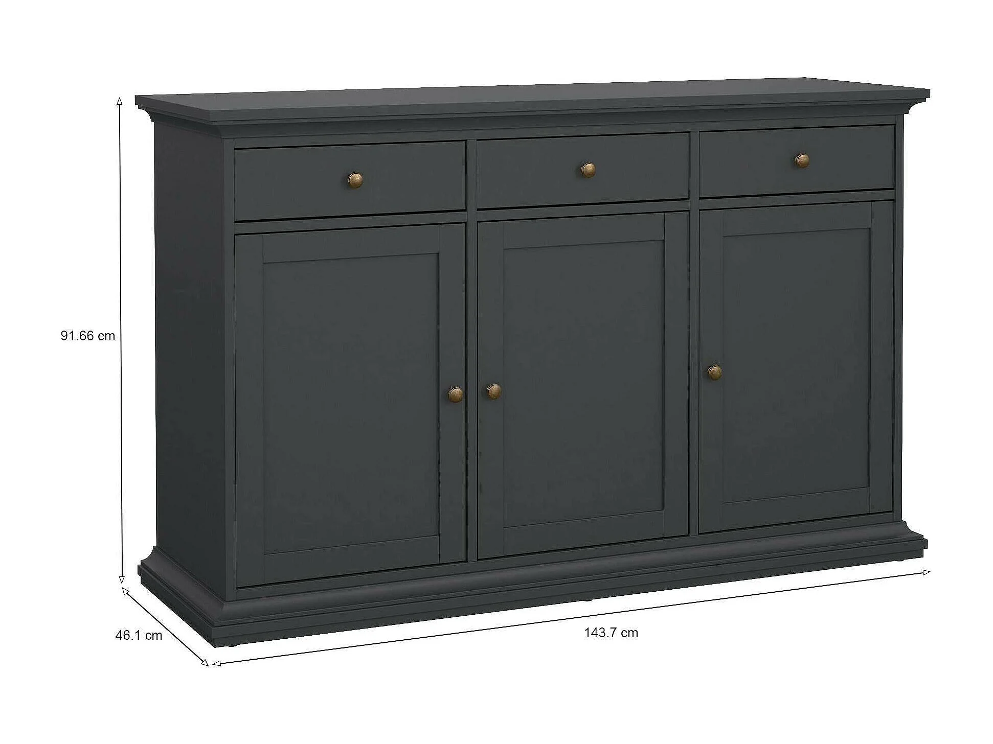 Buffet Asola, Buffet du salon, Commode de salon, Garde-manger de cuisine, 144x46 h92 cm, Gris