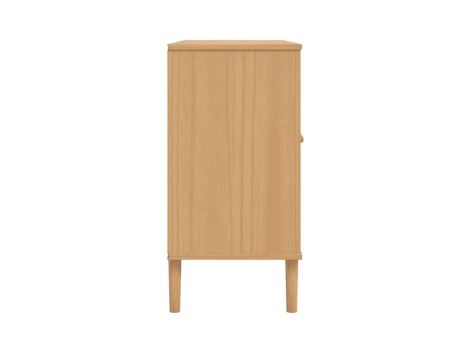 Buffet aspect rotin marron 112x40x80cm bois massif de pin