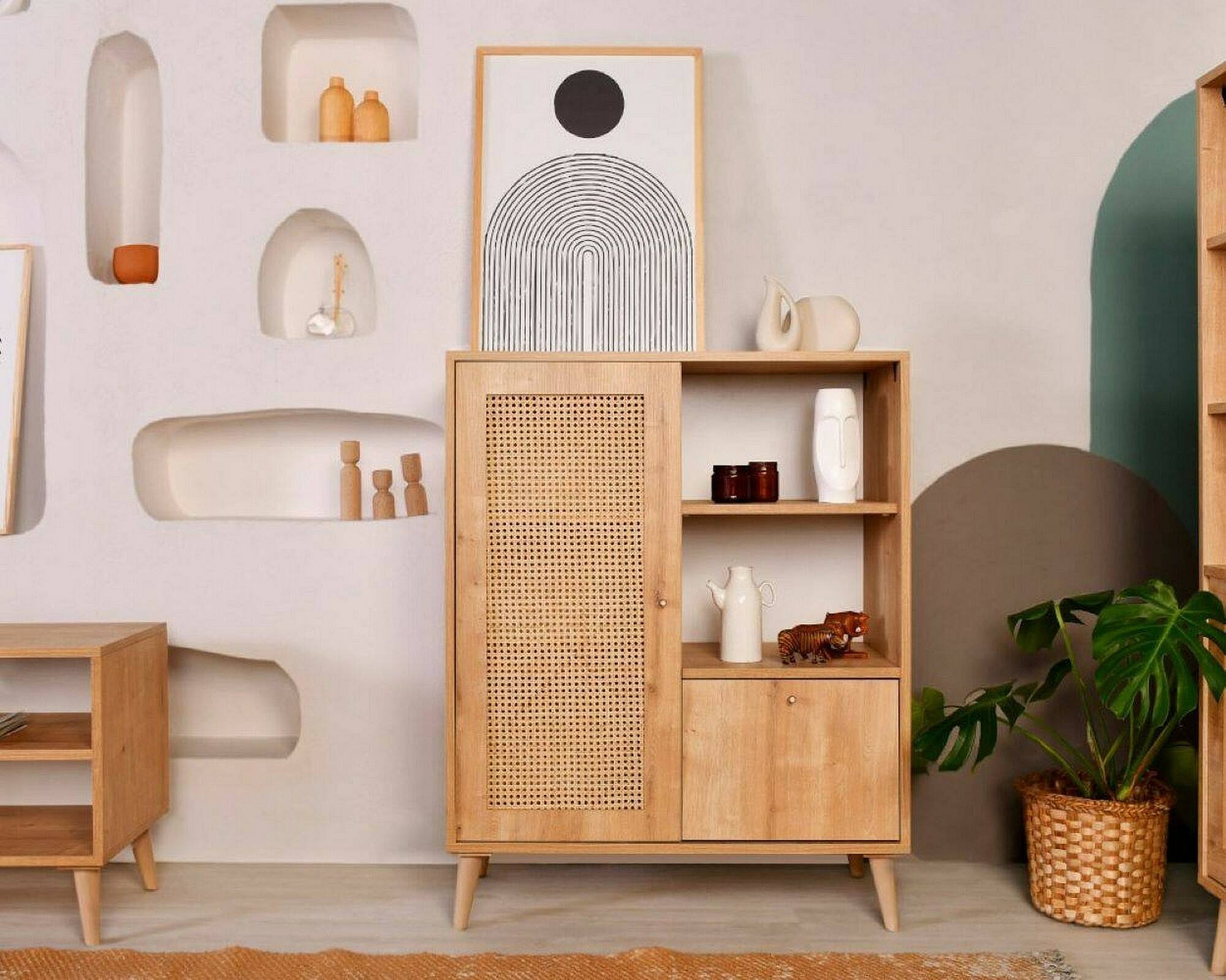 Buffet Selara, Buffet du salon, Commode de salon, Garde-manger de cuisine, 90x40h110 cm, Chêne
