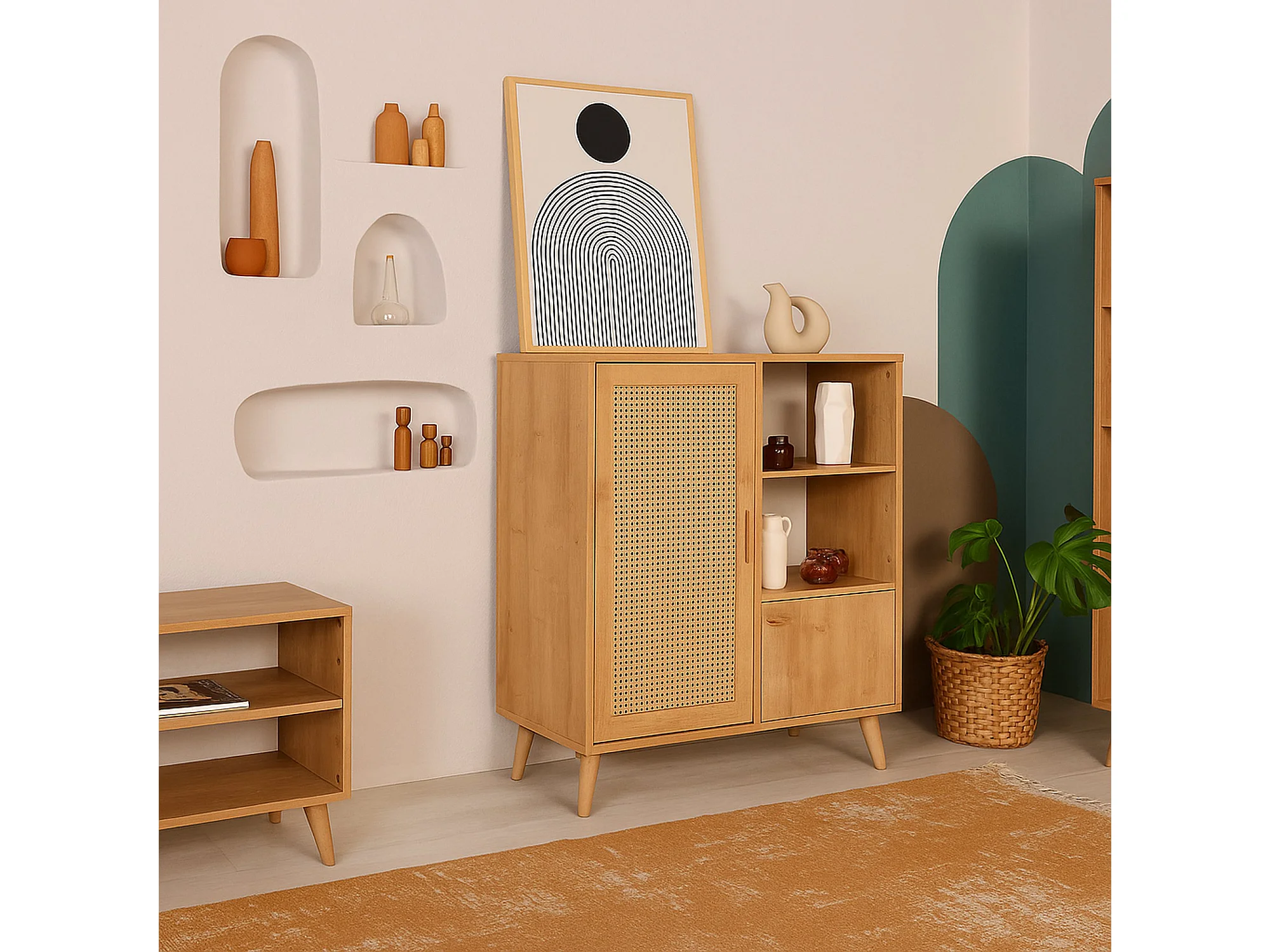 Buffet Astrion, Buffet du salon, Commode de salon, Garde-manger de cuisine, 90x40h110 cm, Chêne