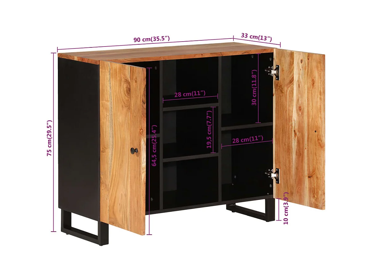 Buffet avec 2 portes 90x33x75 cm bois massif d'acacia