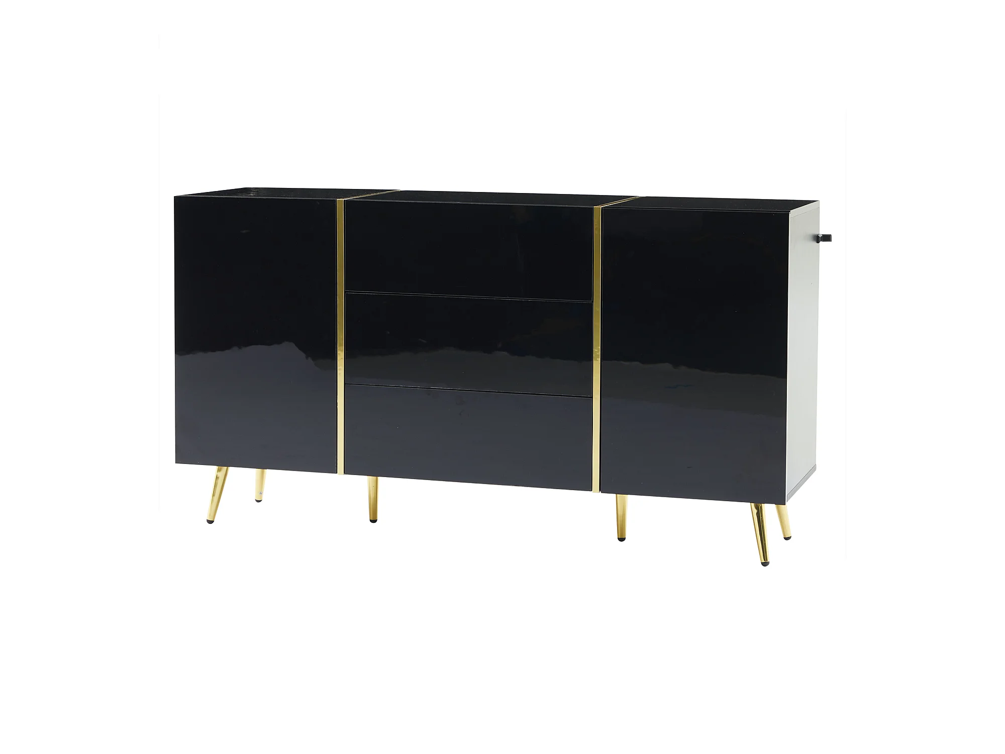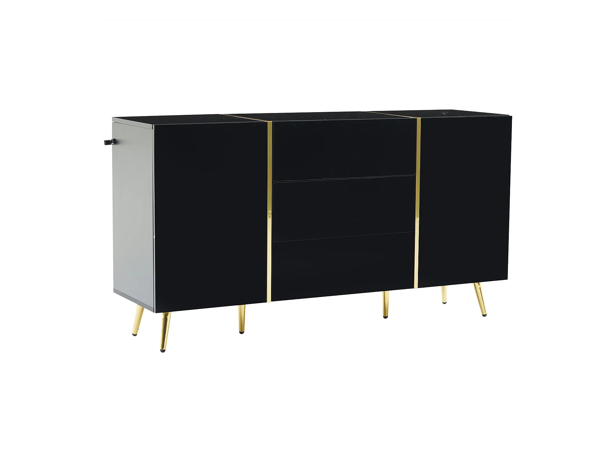 Buffet avec 2 portes et 3 tiroirs - 140 x 40 x 76 cm - Panneaux de particules et pieds dorés - Blanc brillant