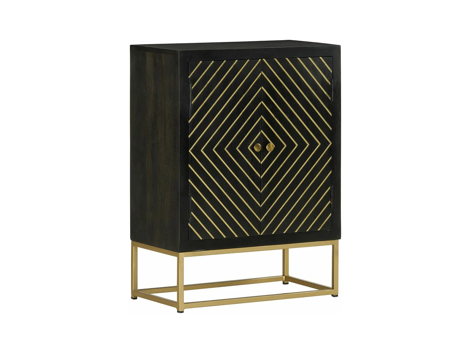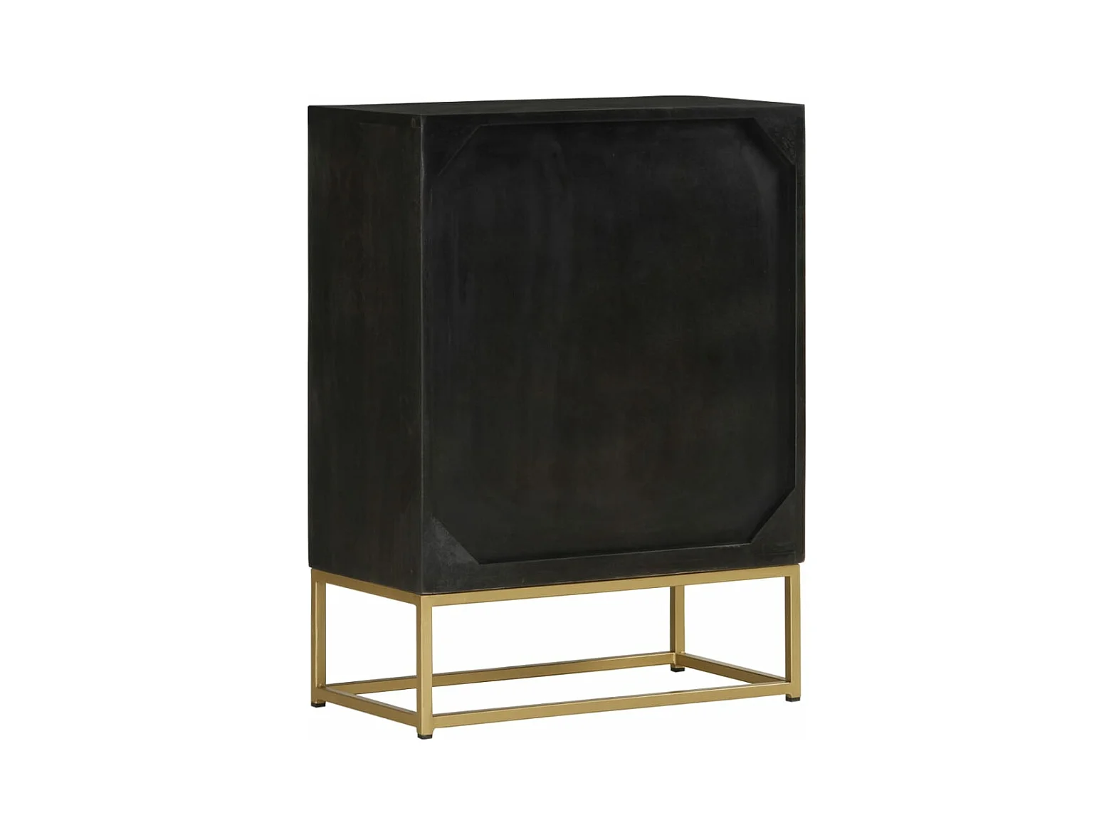 Buffet avec 2 portes noir et doré 55x30x75 cm manguier