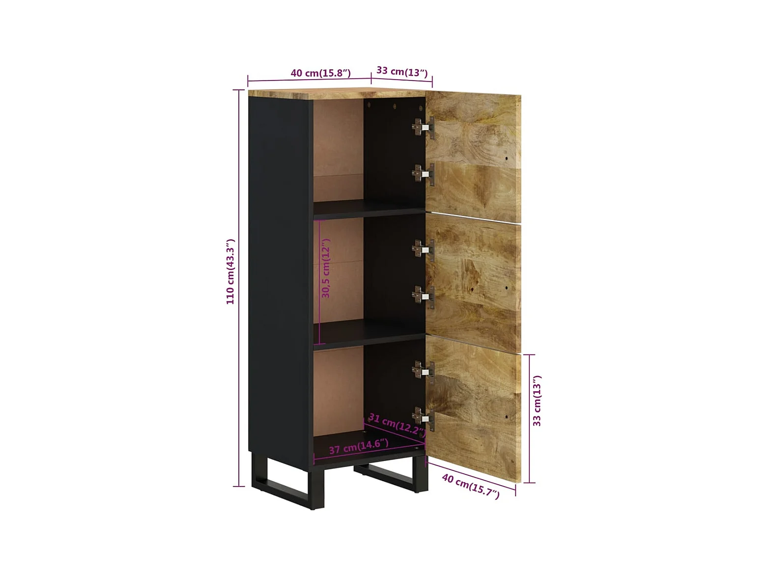 Buffet avec 3 portes 40x33x110 cm bois massif manguier et fer