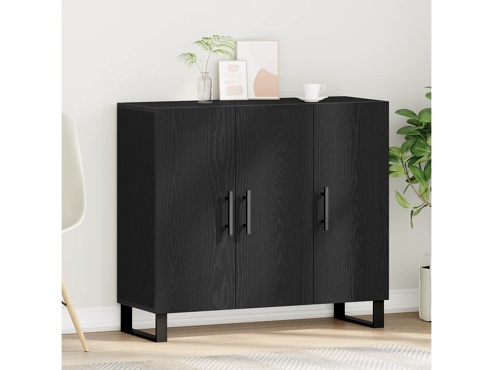 Buffet avec 3 portes en chêne noir 90x34x80 cm en bois d'ingénierie