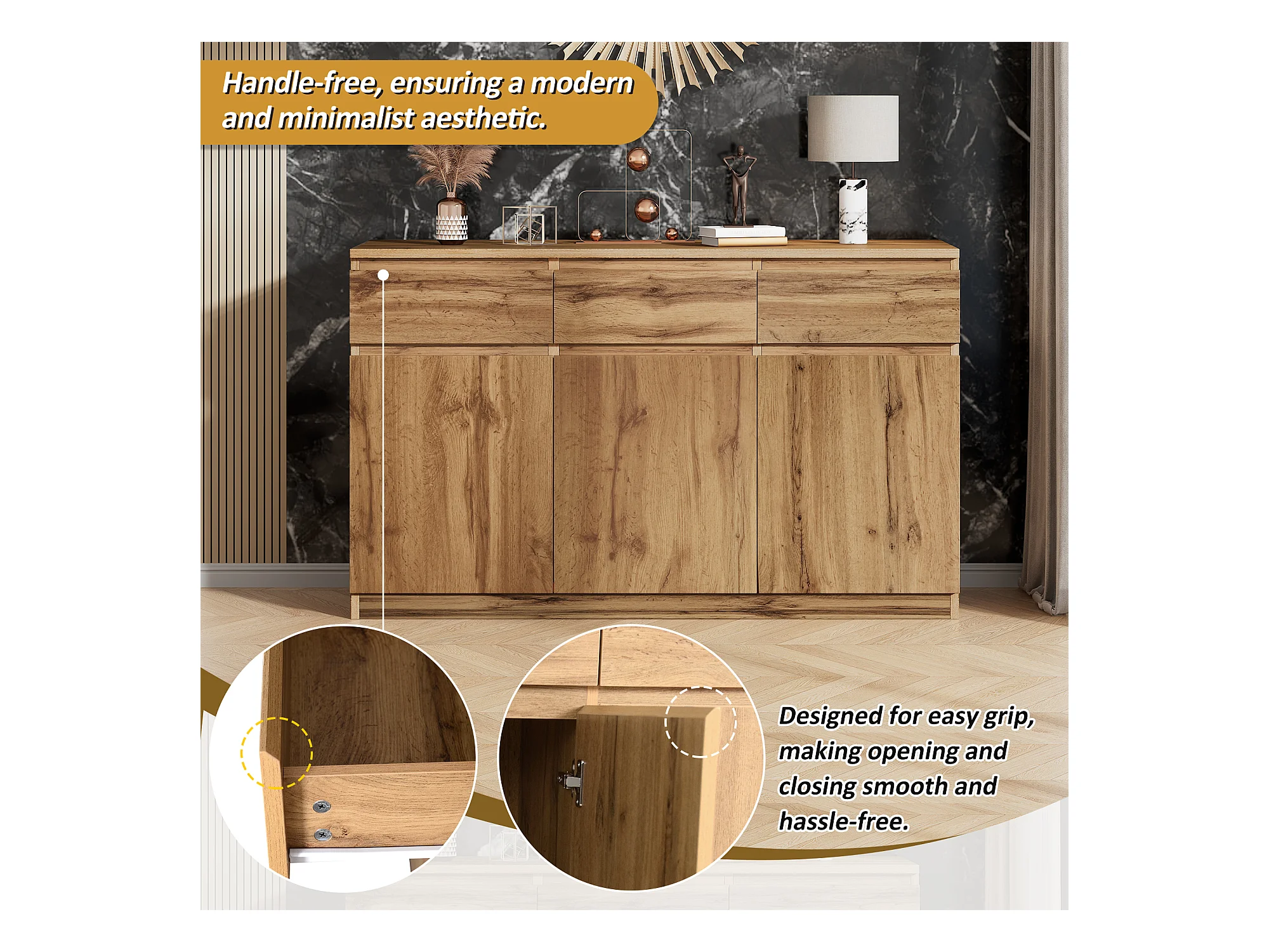 Buffet avec 3 portes et 3 tiroirs - panneaux de particules - Naturel