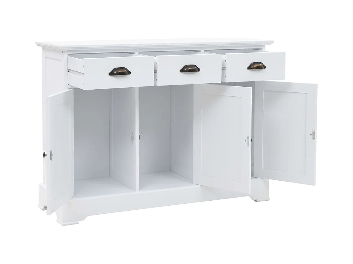 Buffet de rangement avec tiroir, 2 portes et 2 étagères ouvertes, bois, blanc (120x35x75.2 cm)