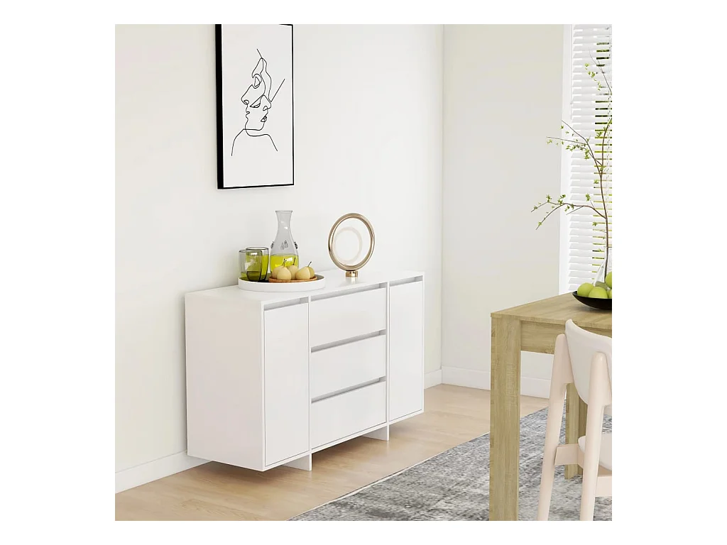Buffet et 3 tiroirs Blanc brillant 120x41x75 cm Bois ingénierie