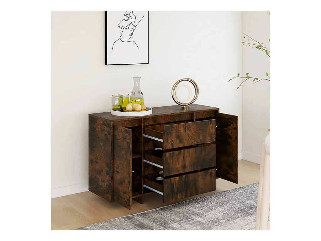 Buffet avec 3 tiroirs Chêne fumé 120x41x75 cm Aggloméré