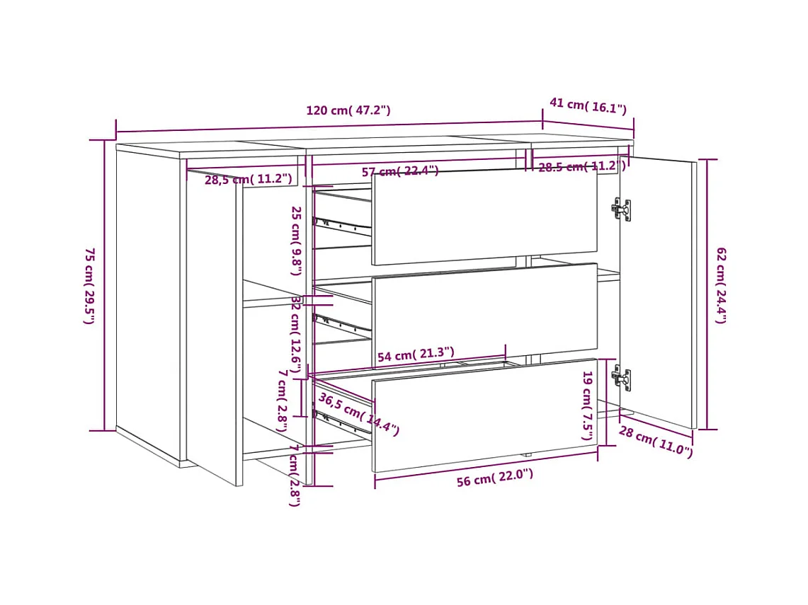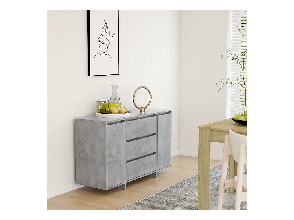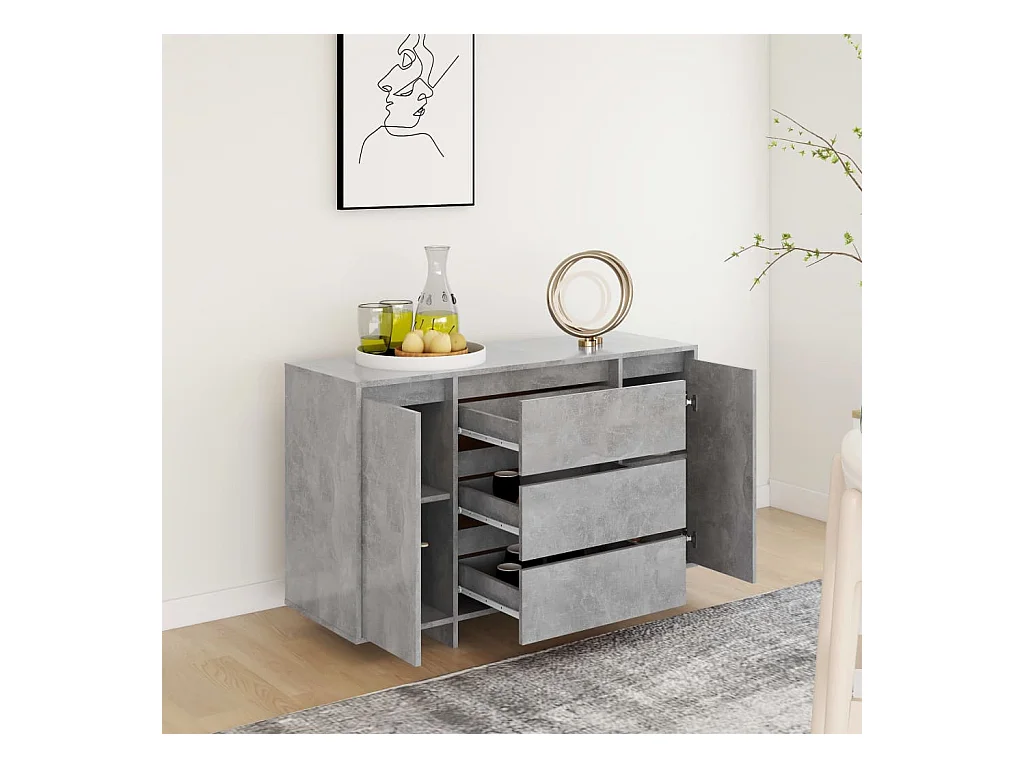 Buffet avec 3 tiroirs Gris béton 120x41x75 cm Bois d'ingénierie