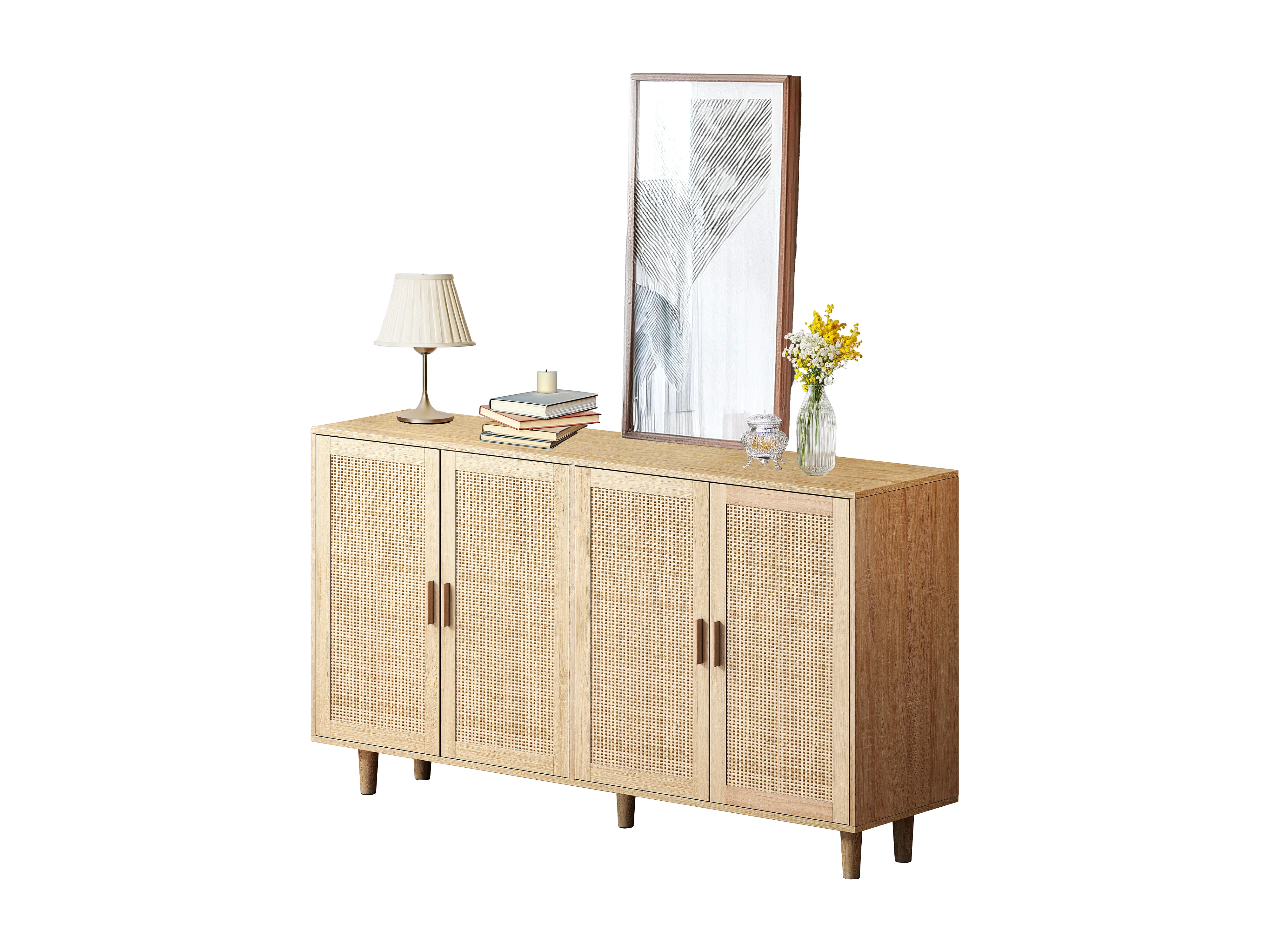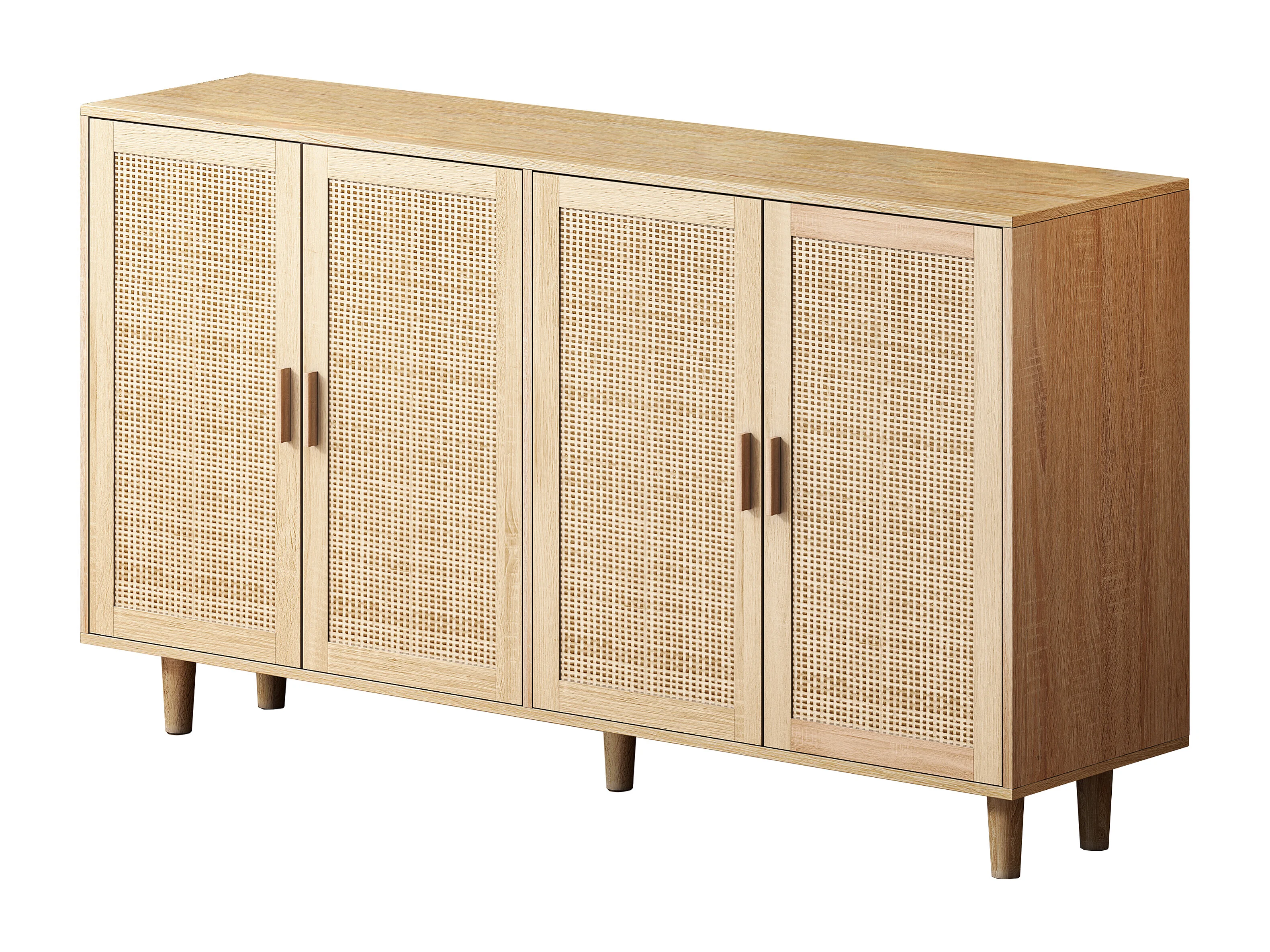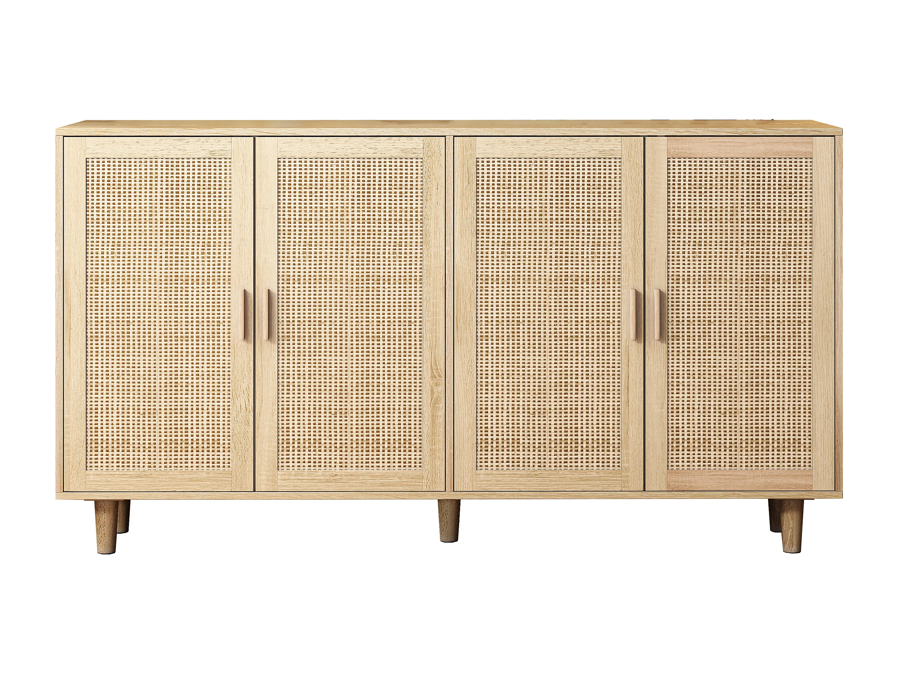 Buffet avec 4 portes en rotin - Bois en PB 158x40x88cm - Naturel clair