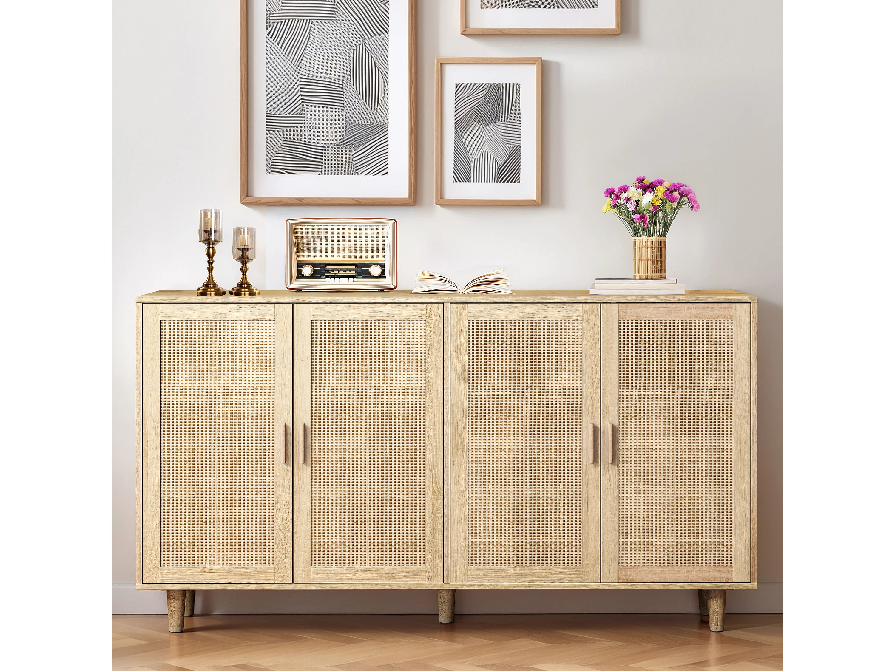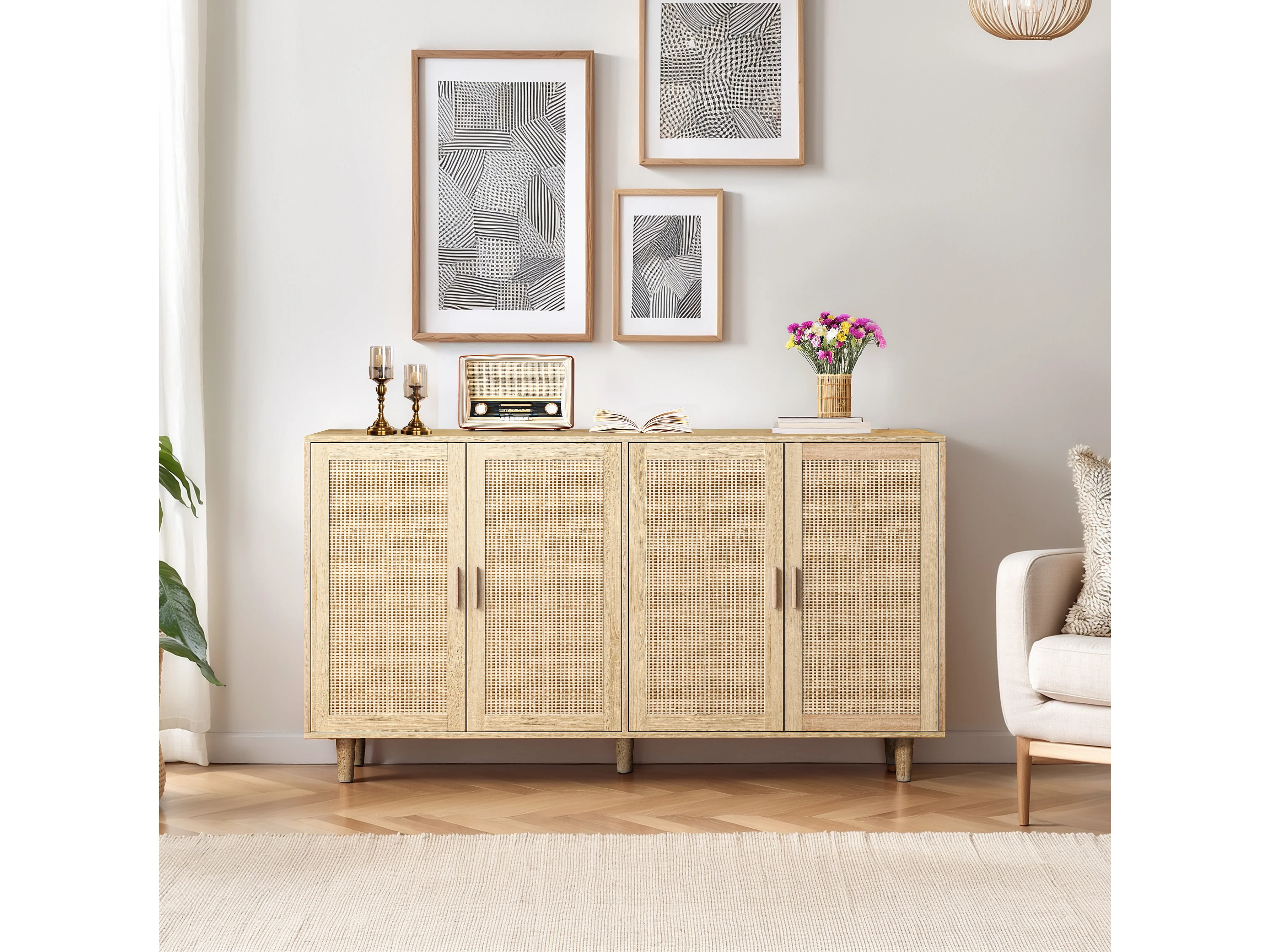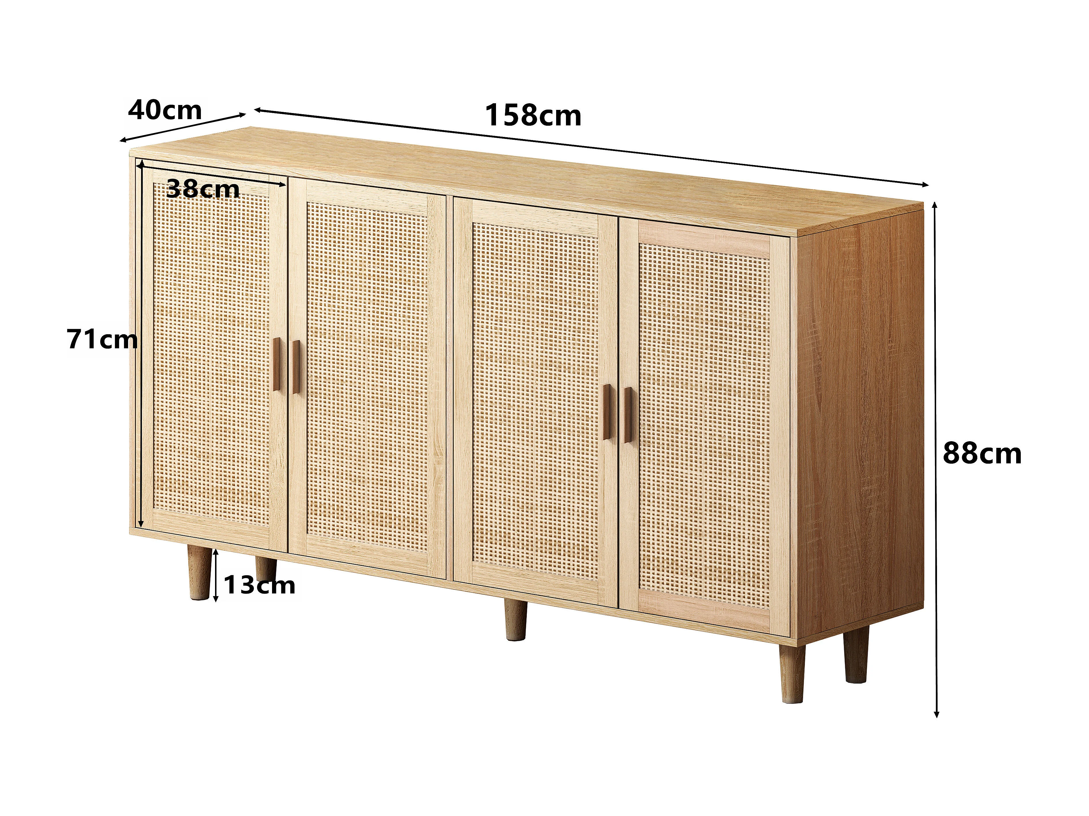 Buffet avec 4 portes en rotin - Bois en PB 158x40x88cm - Naturel clair