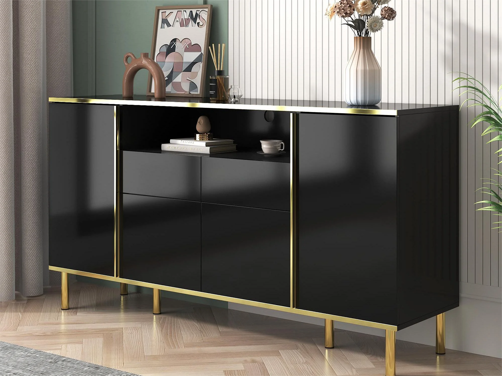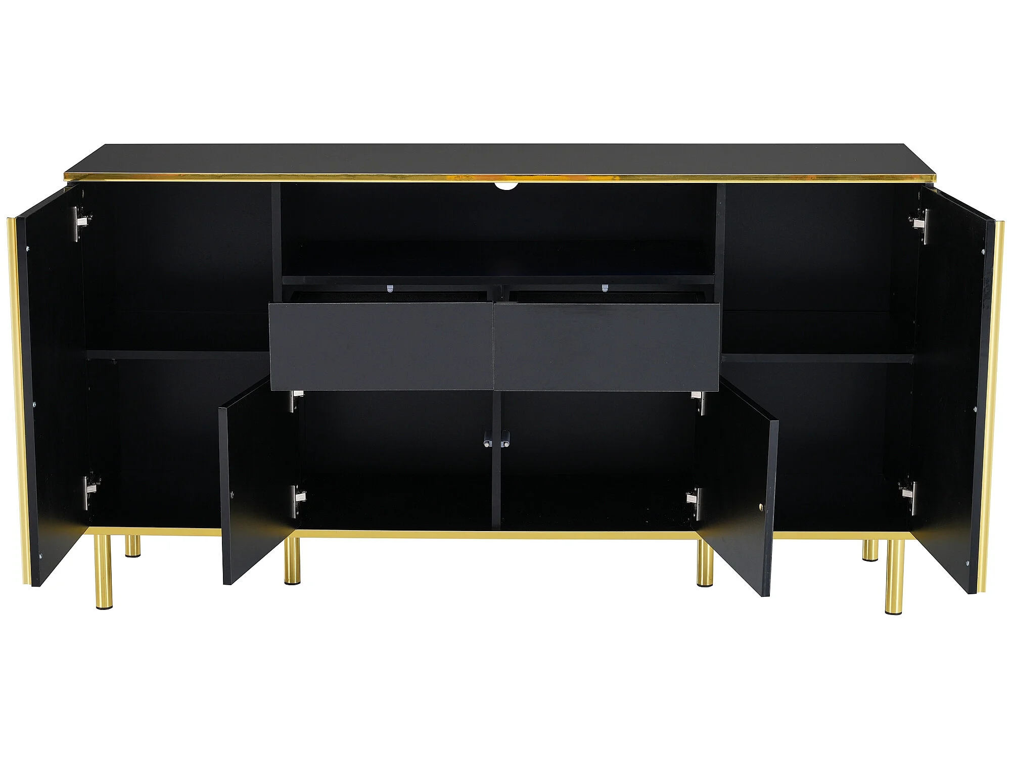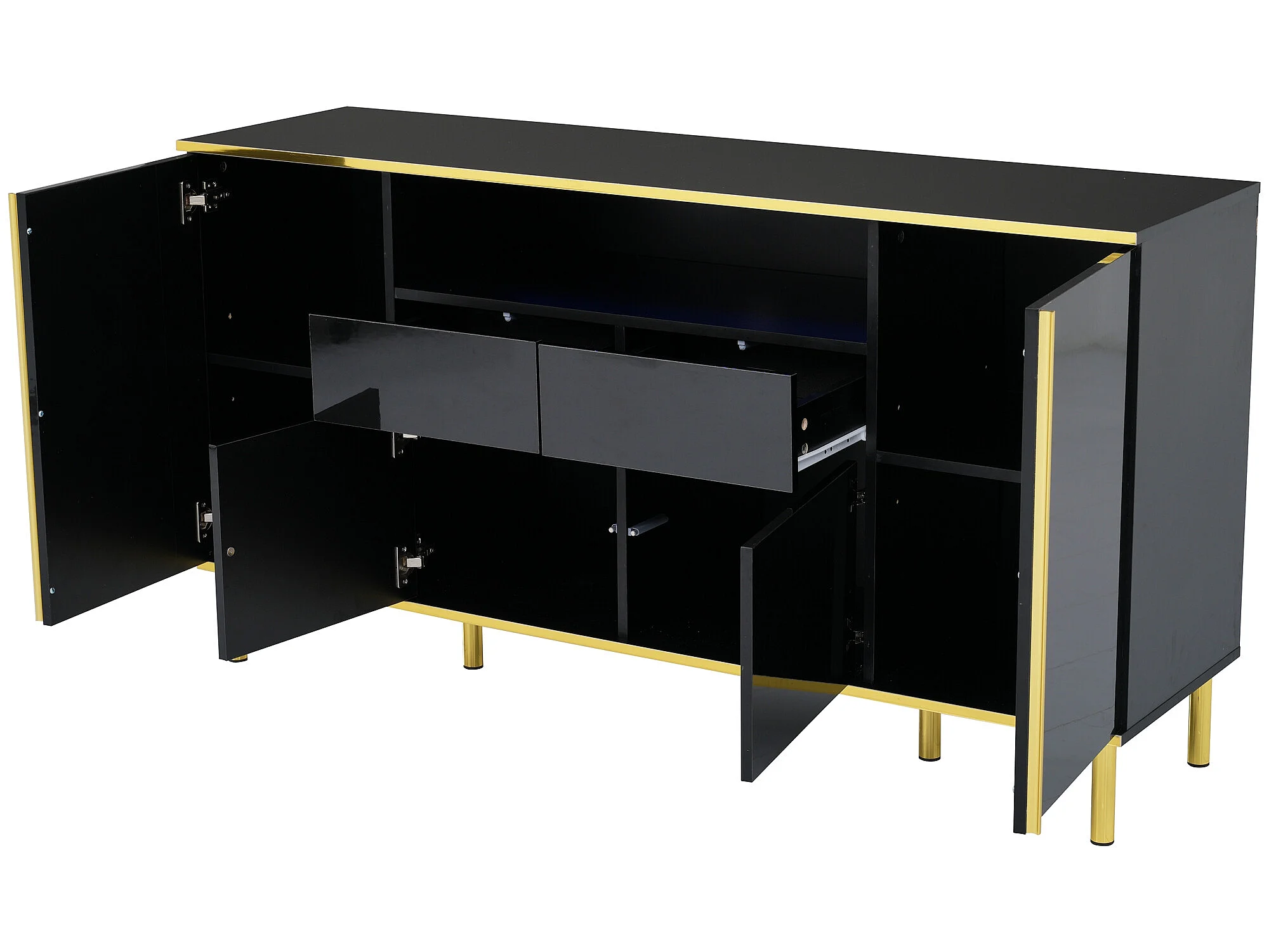 Buffet avec 4 portes et 2 tiroirs en panneaux de particules - leds - noir brillant