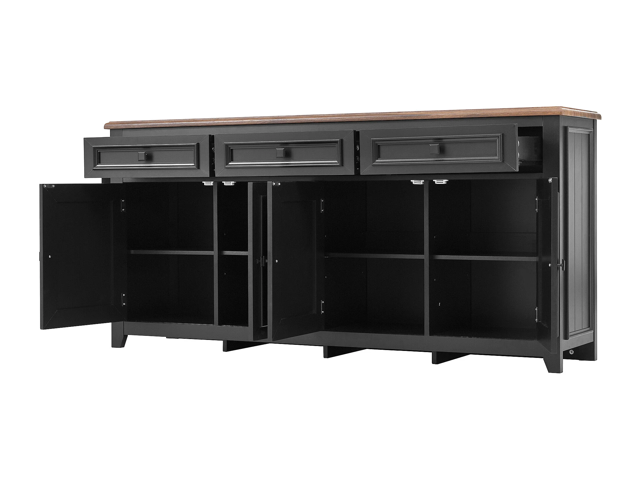 Buffet avec 4 portes et 3 tiroirs - Bois MDF - Noir