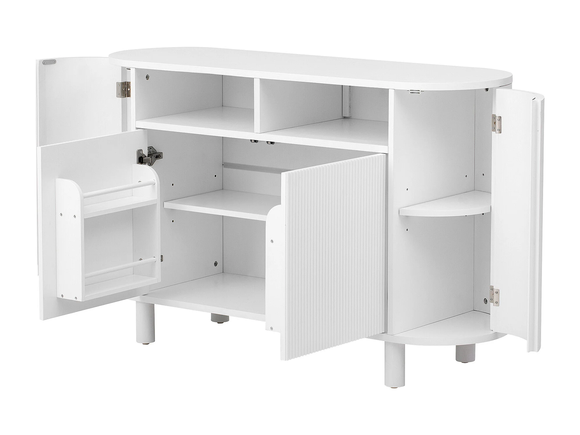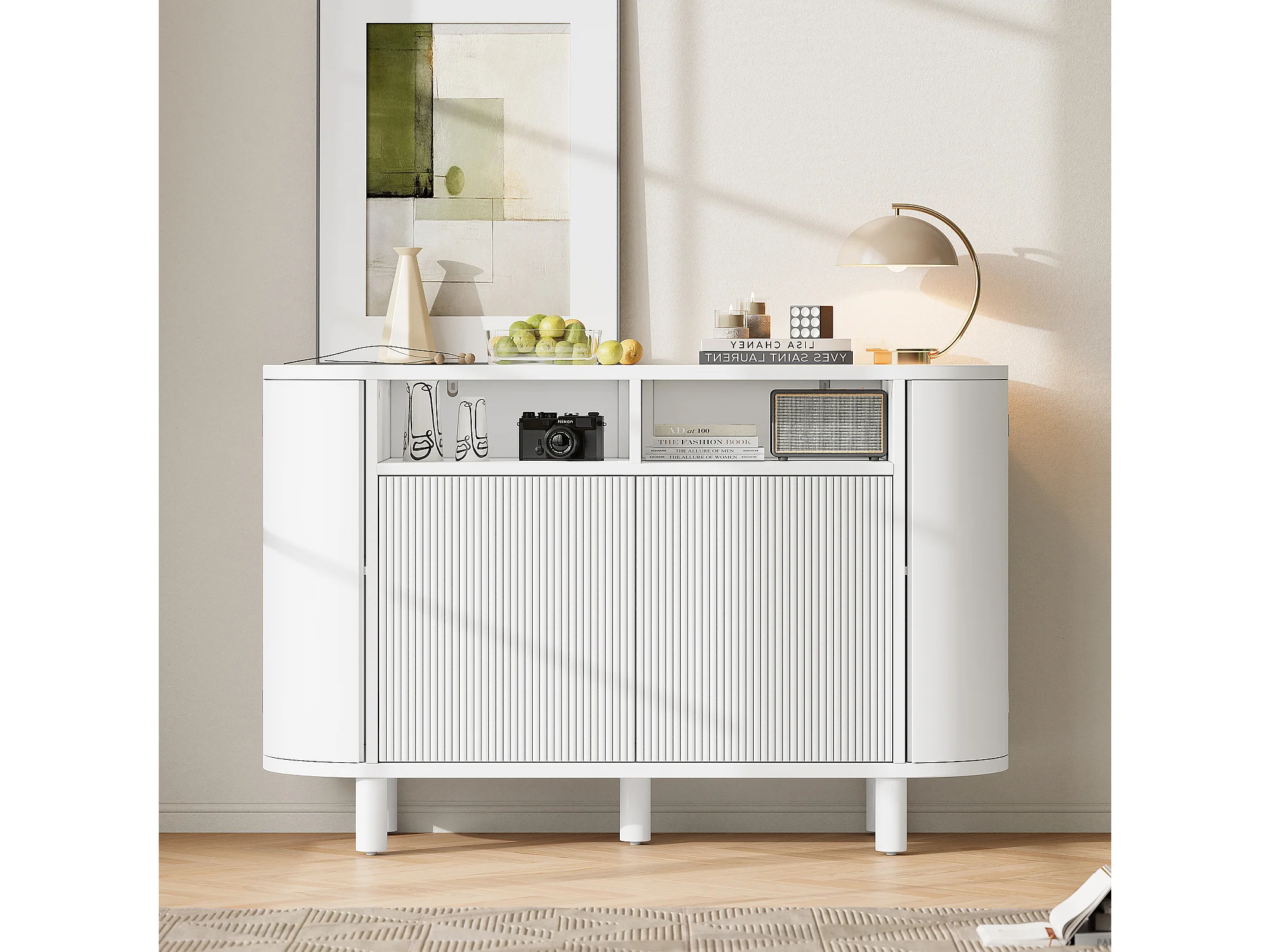 Buffet avec 4 portes et rangement ouvert - Blanc 120 x 38 x 77 cm