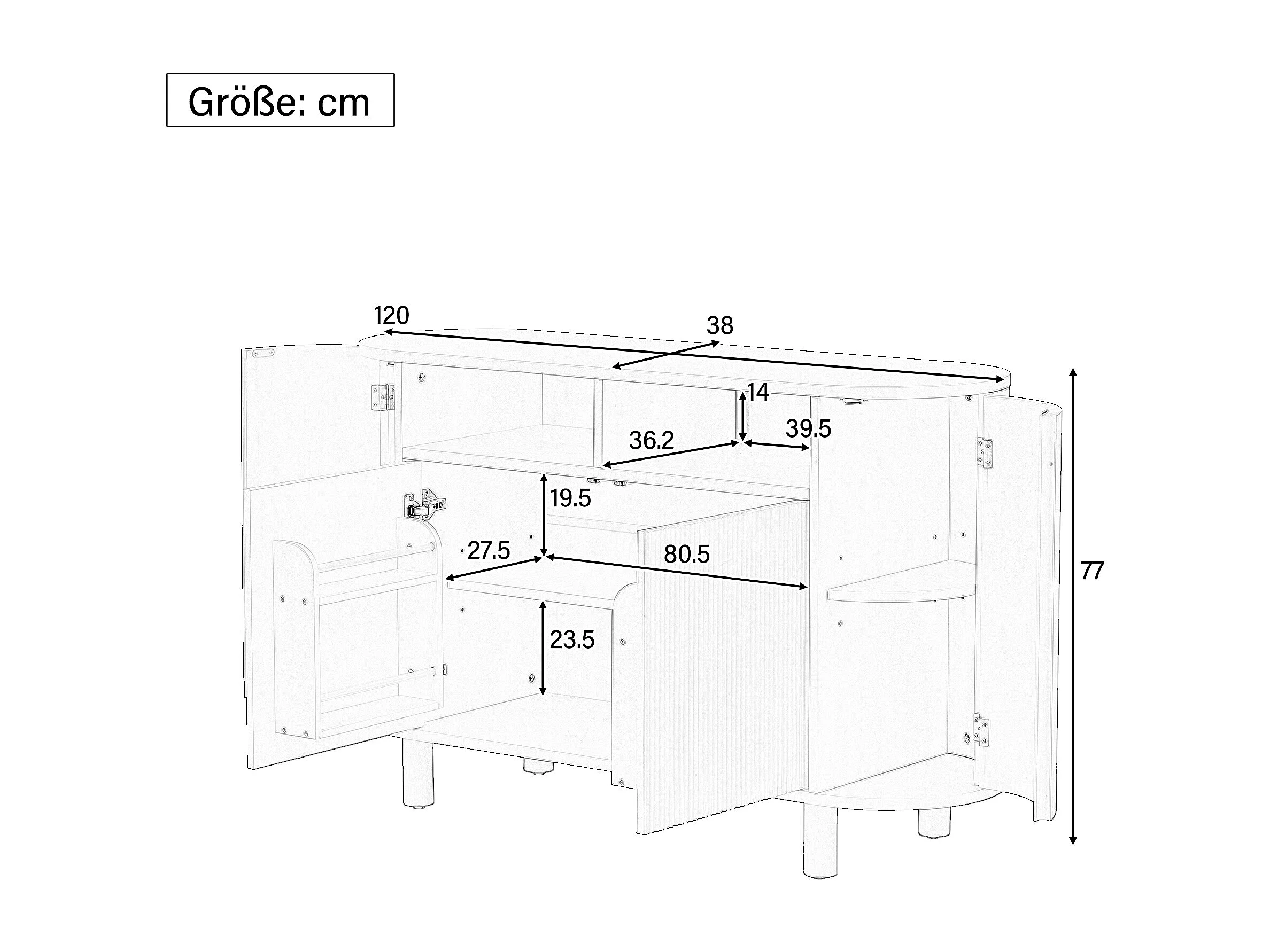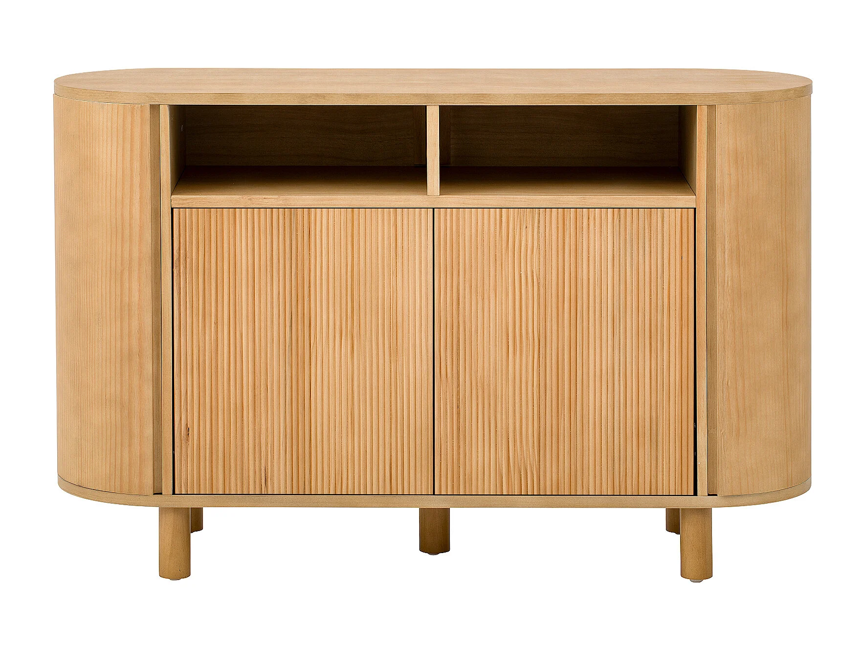 Buffet avec 4 portes et rangement ouvert - Naturel clair 120 x 38 x 77 cm