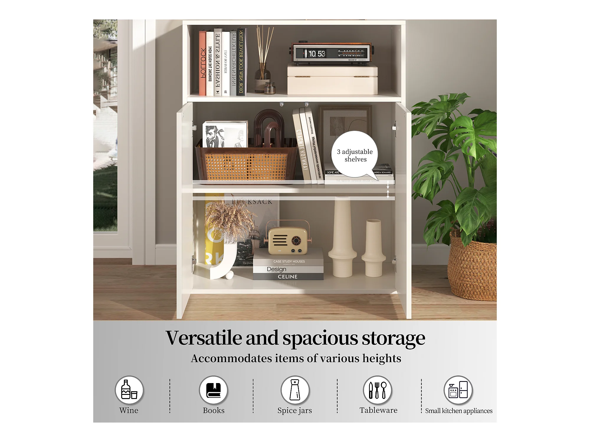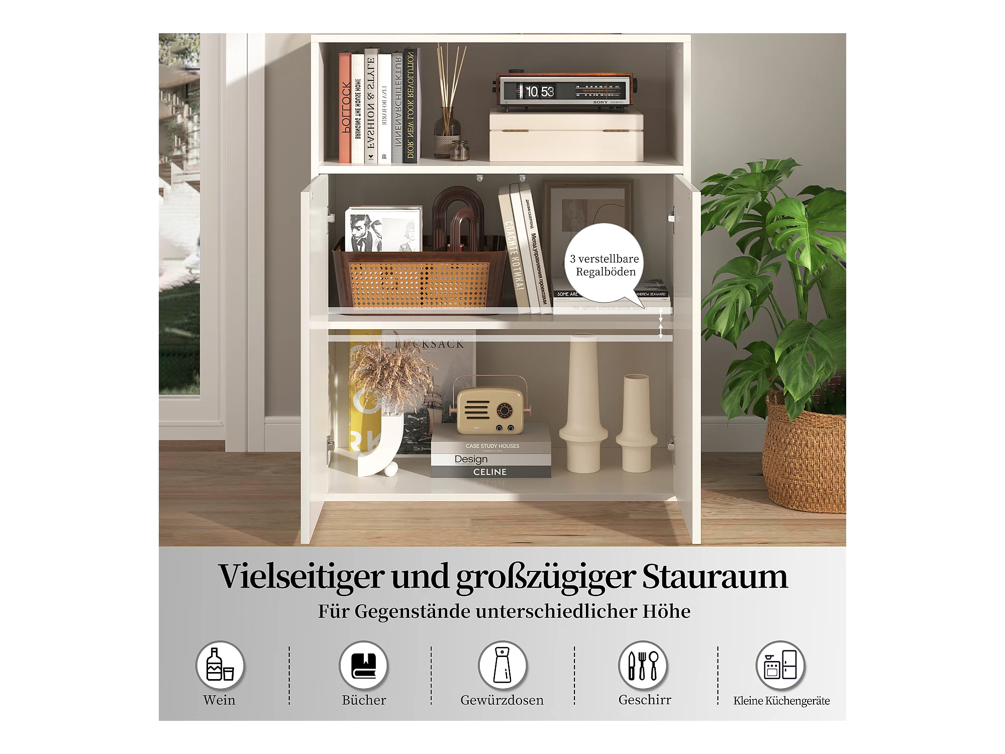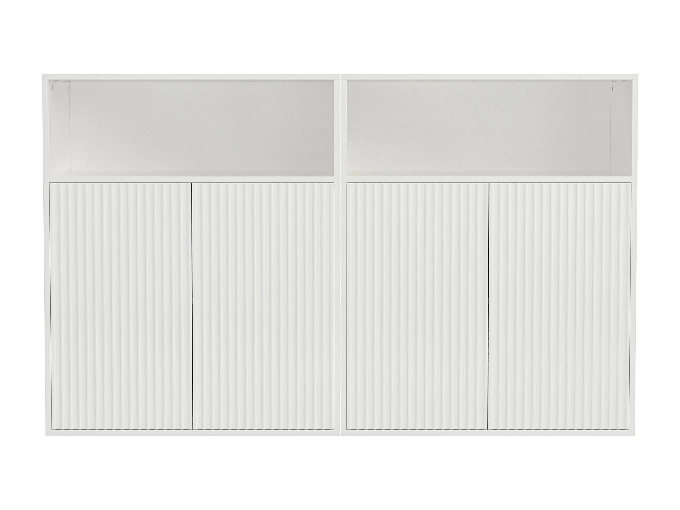 Buffet avec 4 portes magnétiques et 2 niches - 140 x 35 x 90 cm - Bois MDF - Motif rayures verticales - pour salon, cuisine - Blanc