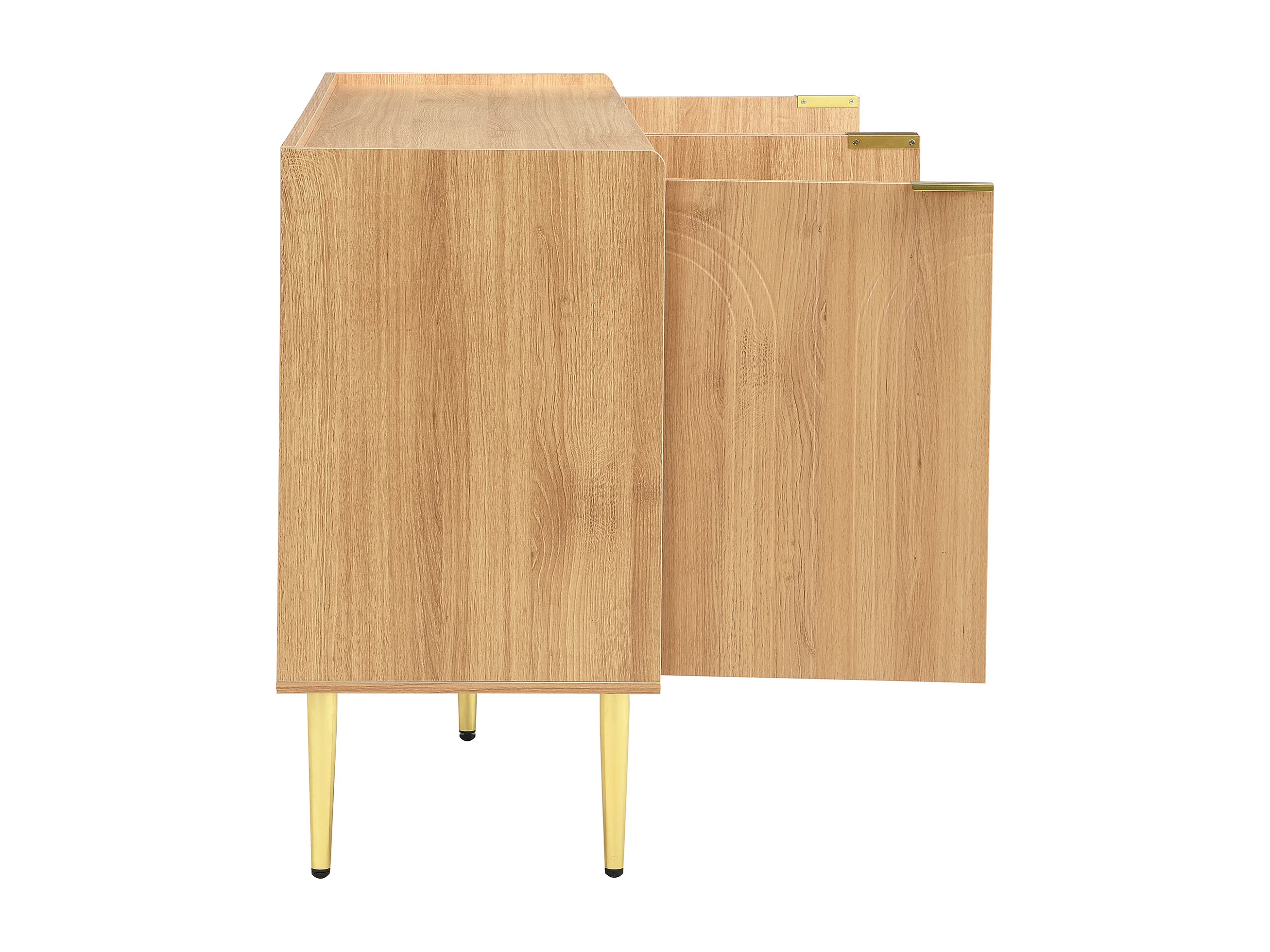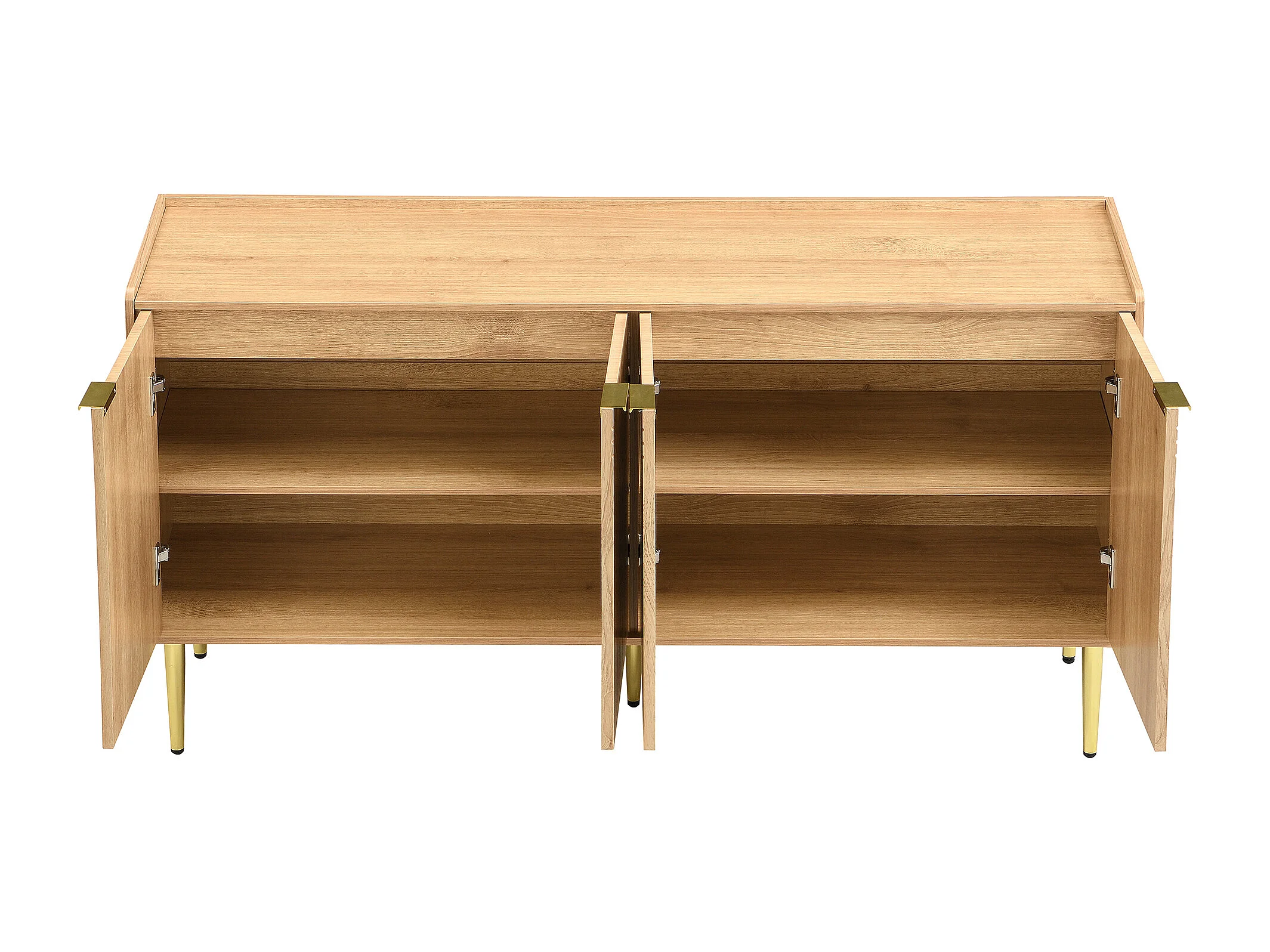 Buffet avec 4 portes - Pieds en métal doré - Naturel 140x38x75cm