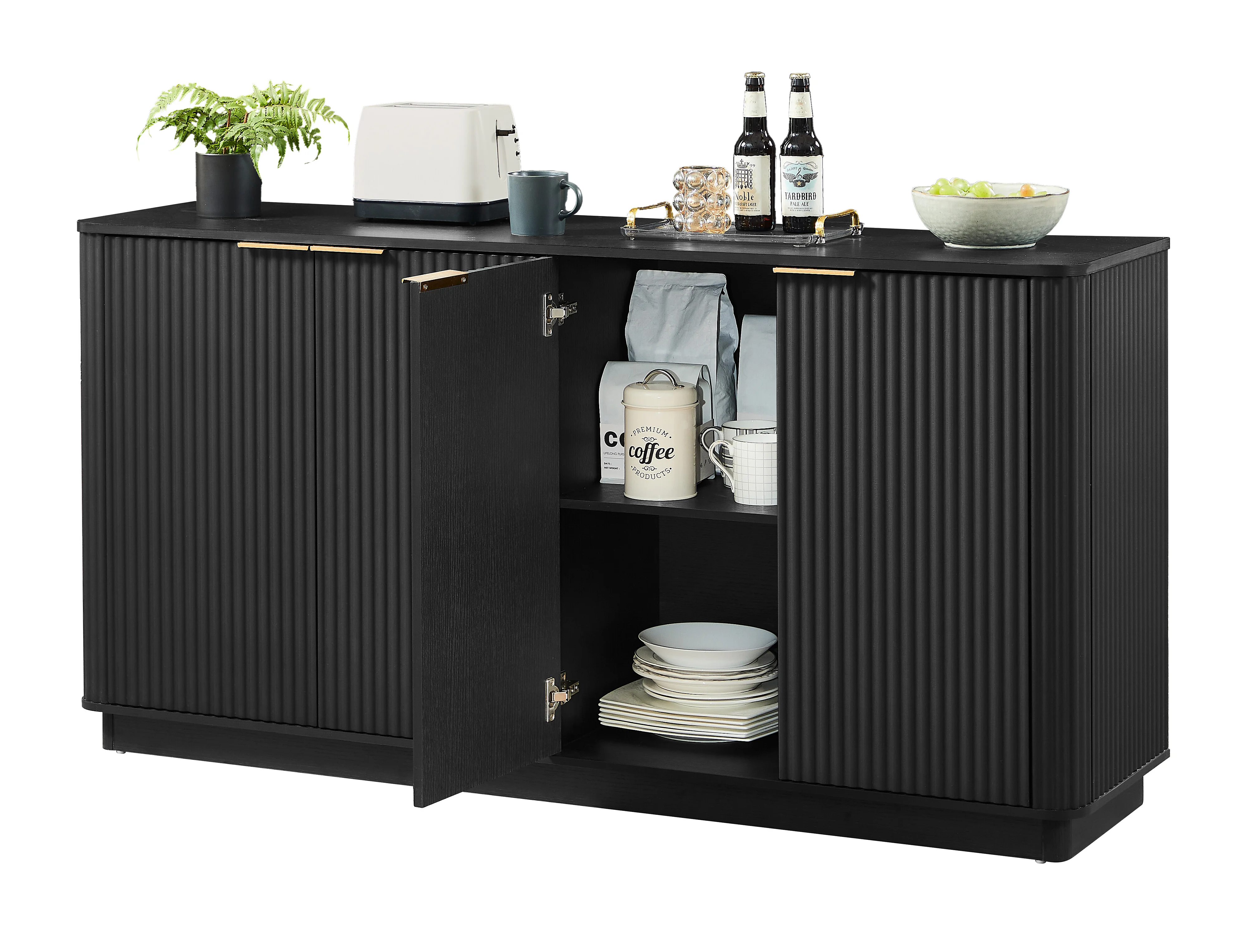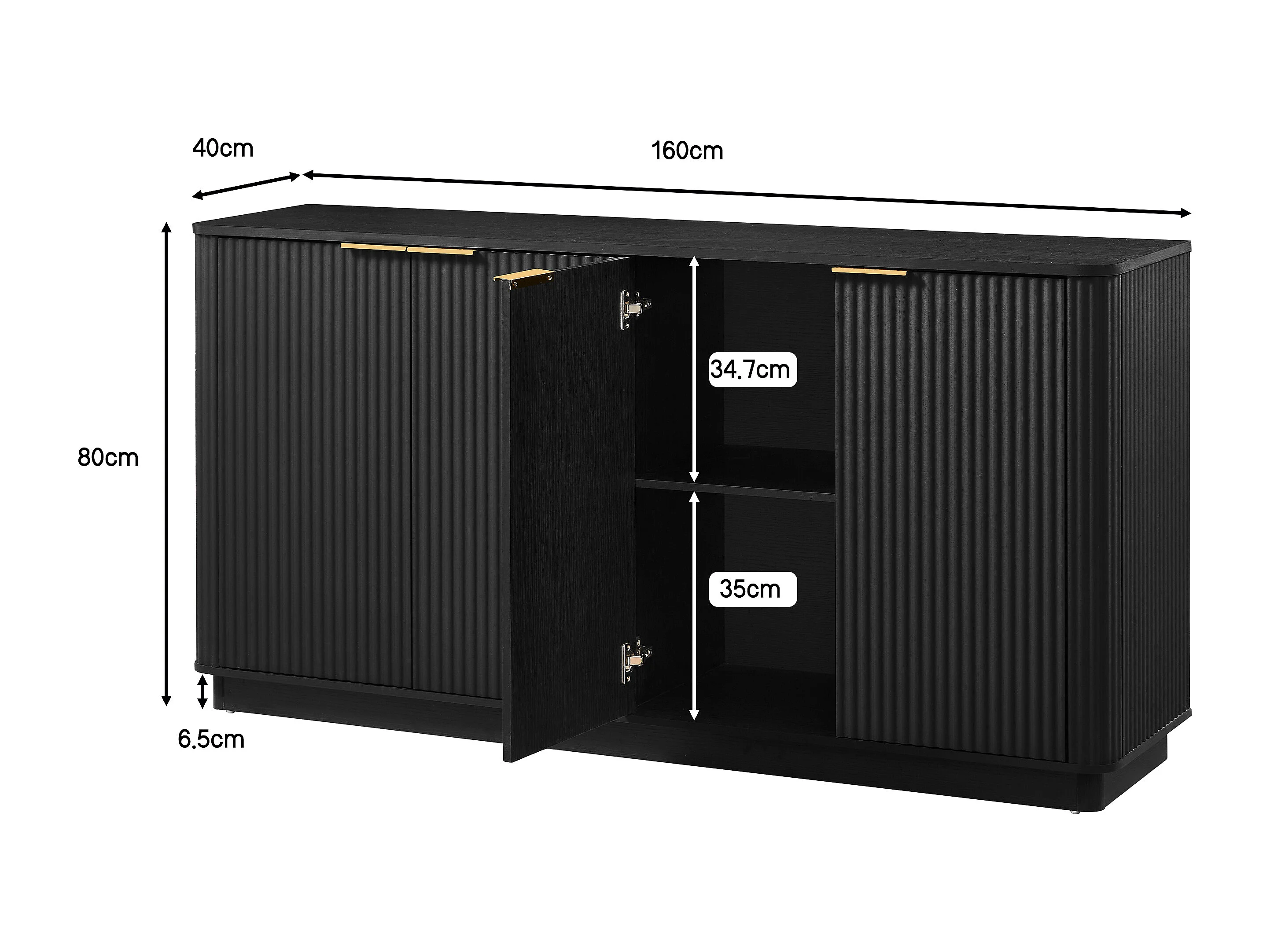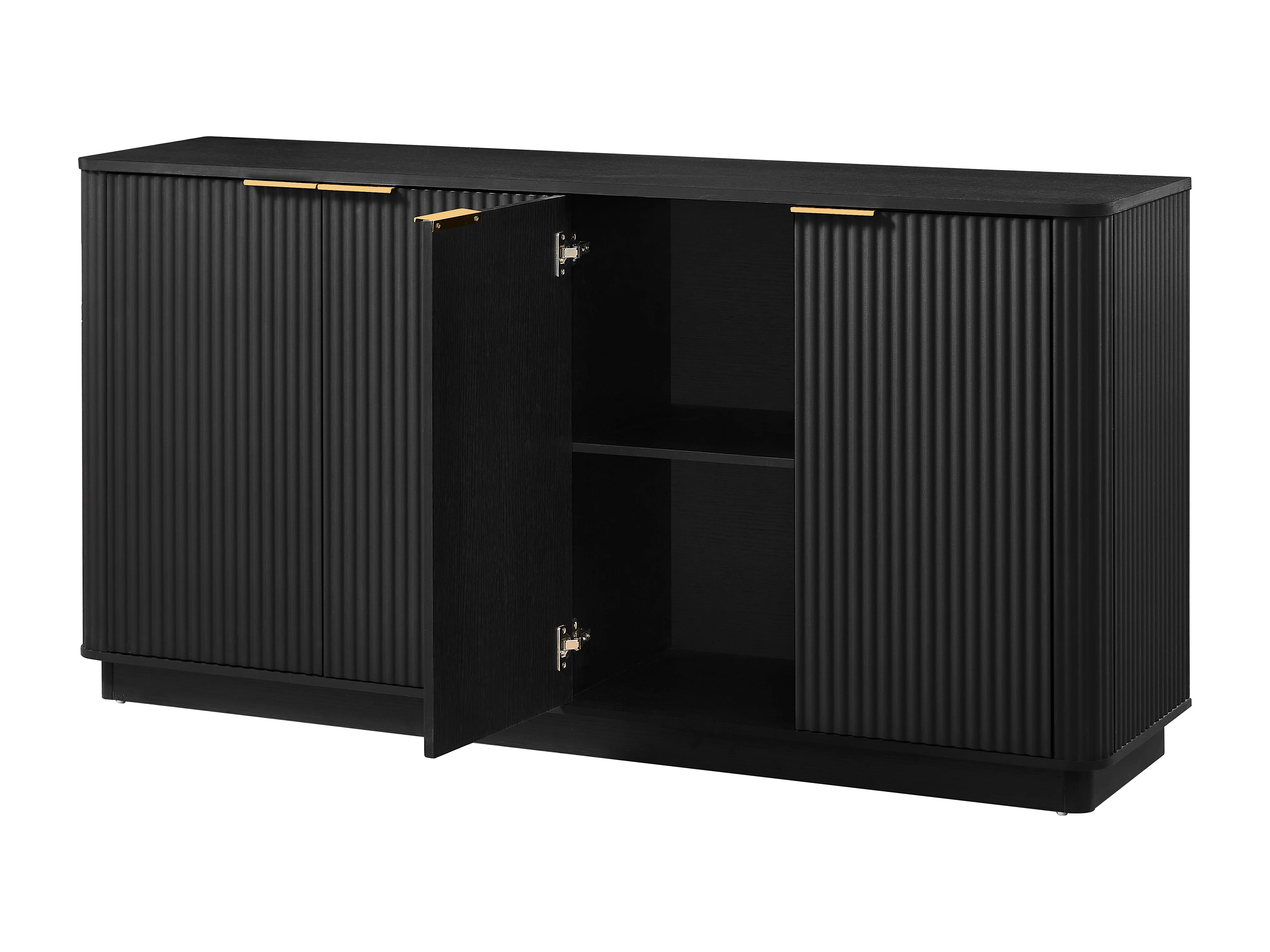 Buffet avec 4 portes rayures verticales - Noir 160 x 40 x 80 cm