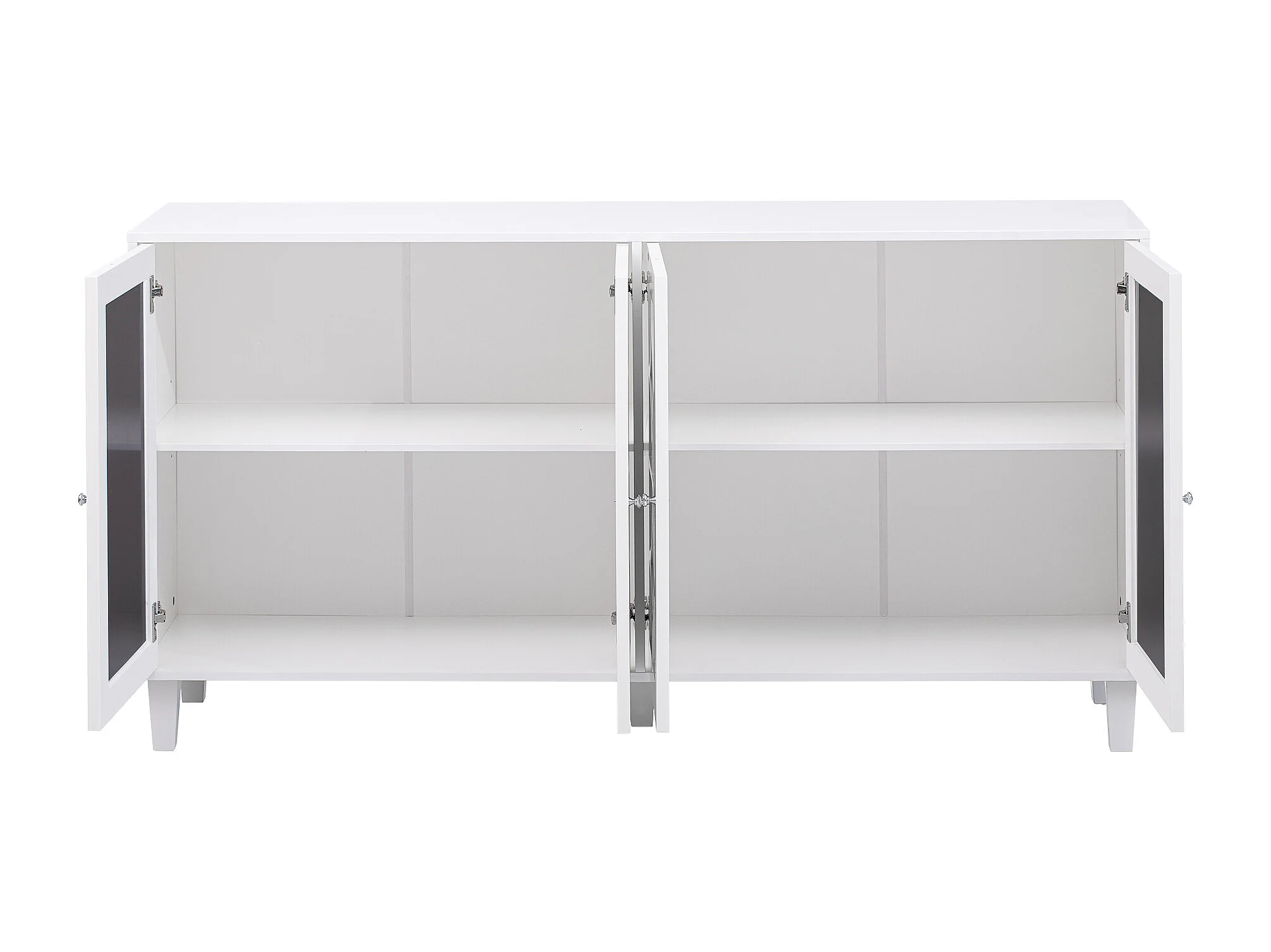 Buffet avec 4 portes vitrées - avec étagères réglables - Blanc