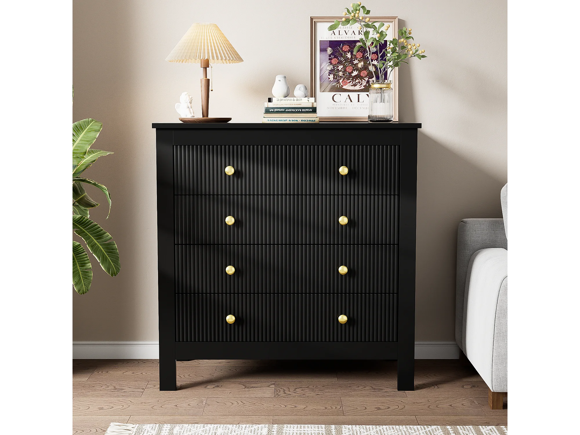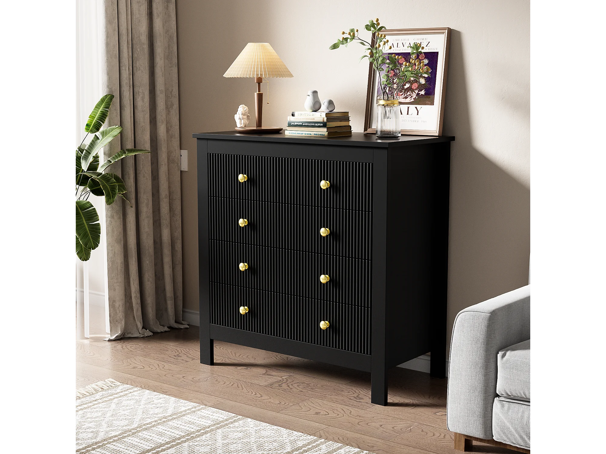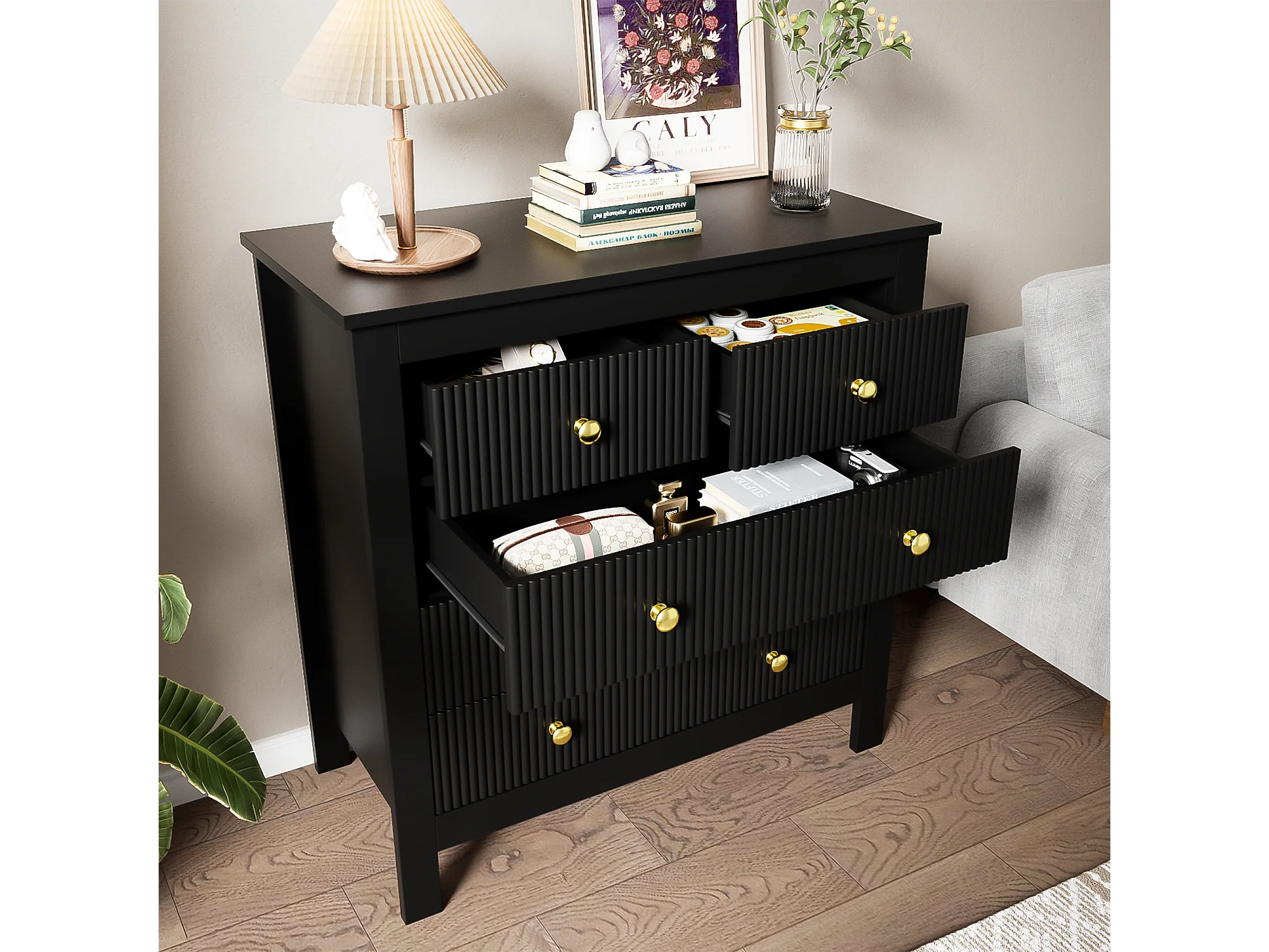 Buffet avec 5 tiroirs et portes spéciales, design moderne, MDF, noir (79x39.5x80.5 cm)