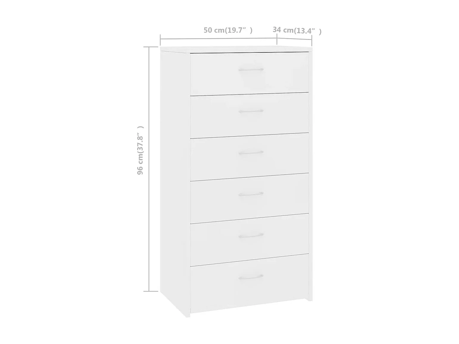 Buffet avec 6 tiroirs Blanc 50x34x96 cm Bois d'ingénierie