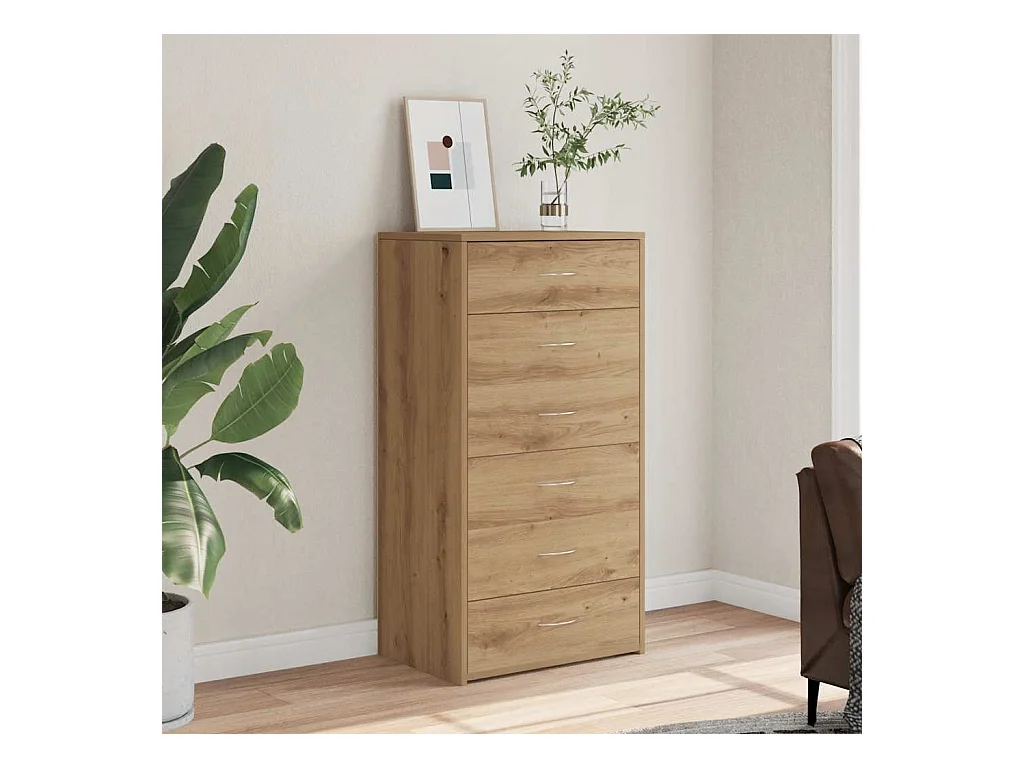 Buffet avec 6 tiroirs chêne artisanal bois d'ingénierie